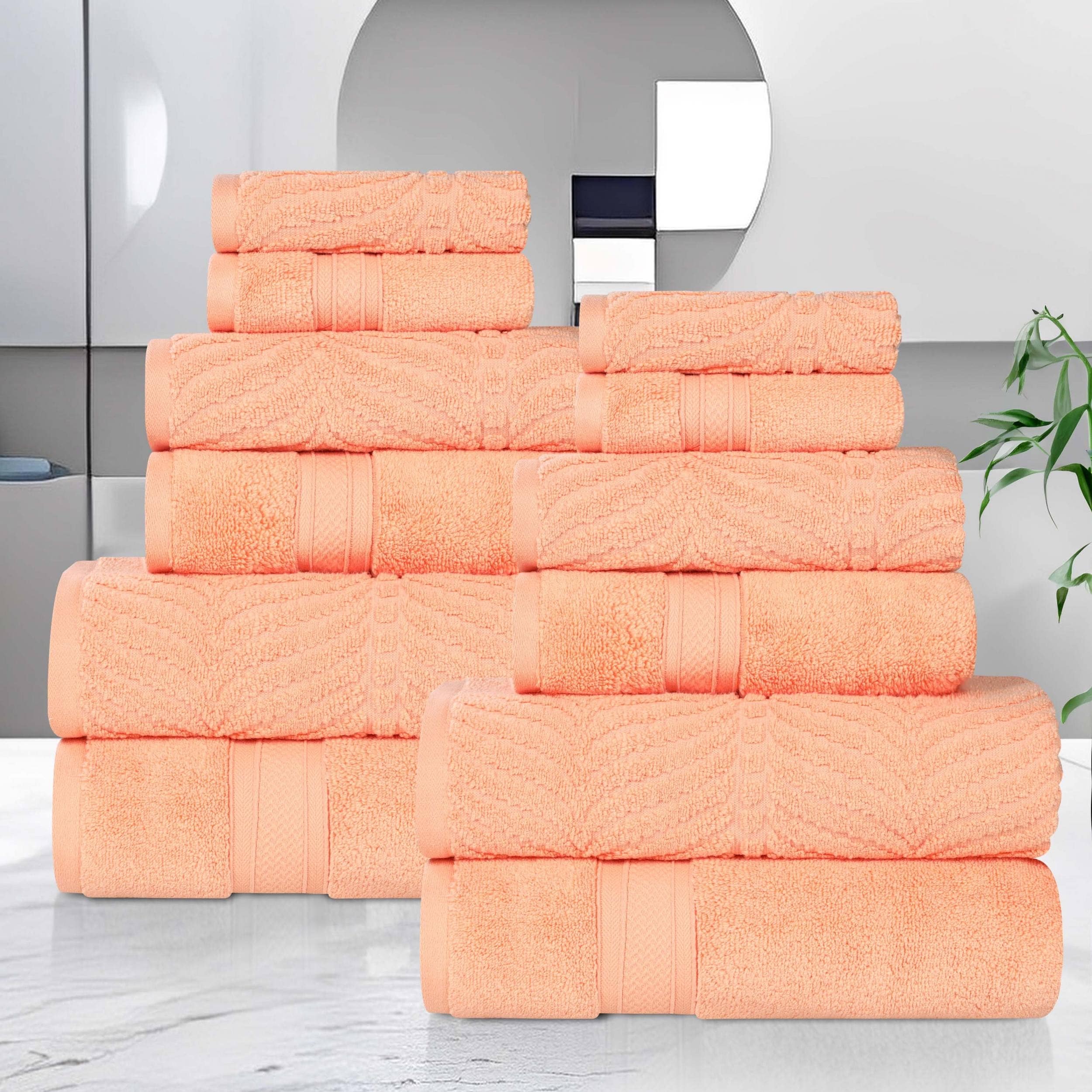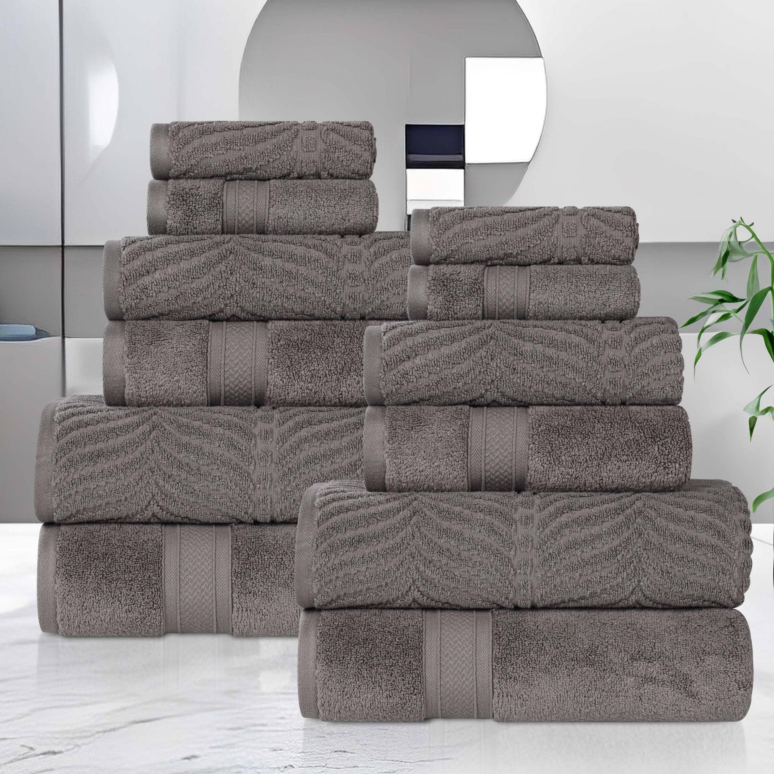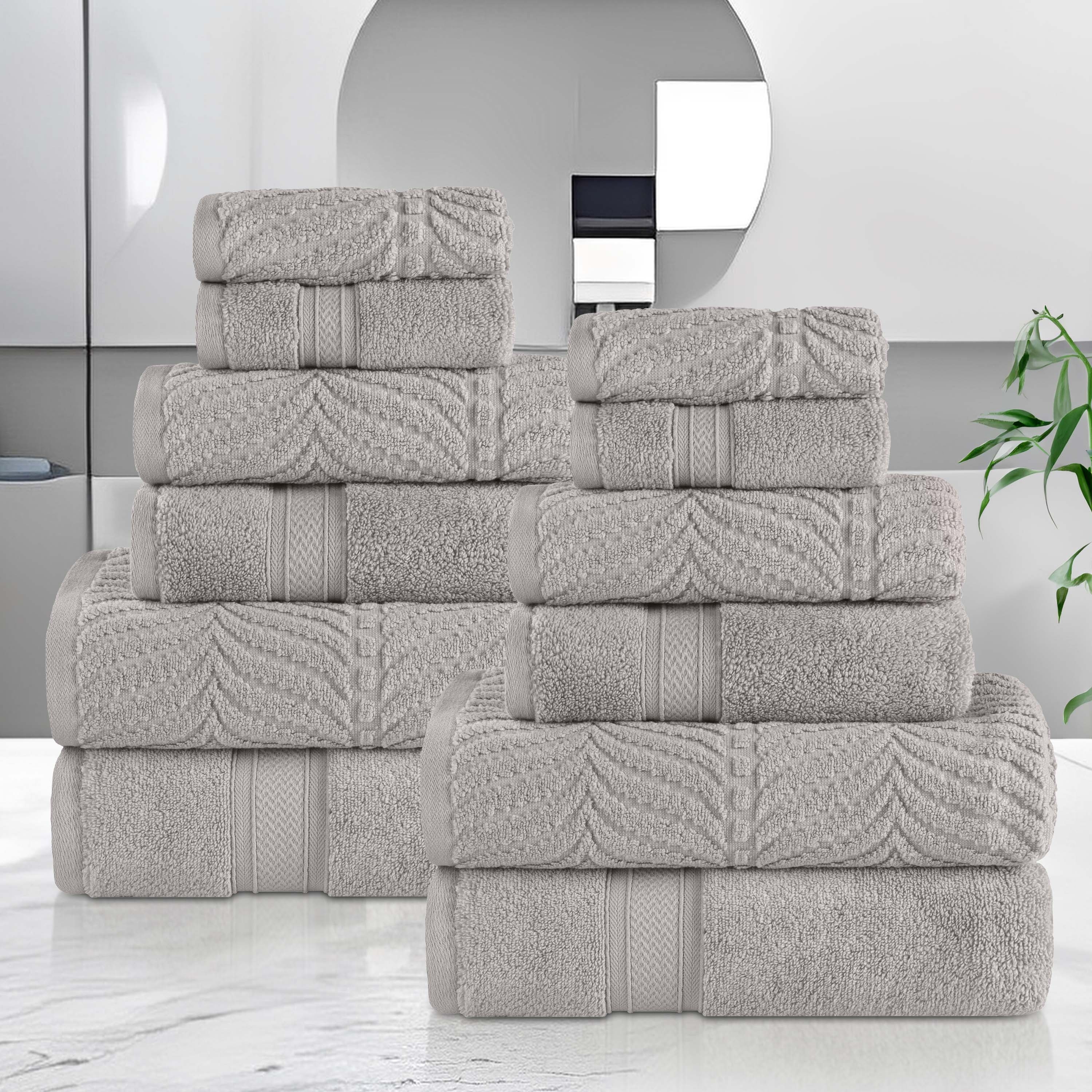 Superior Chevron Zero Twist Solid and Jacquard Cotton 12 Piece Towel Set