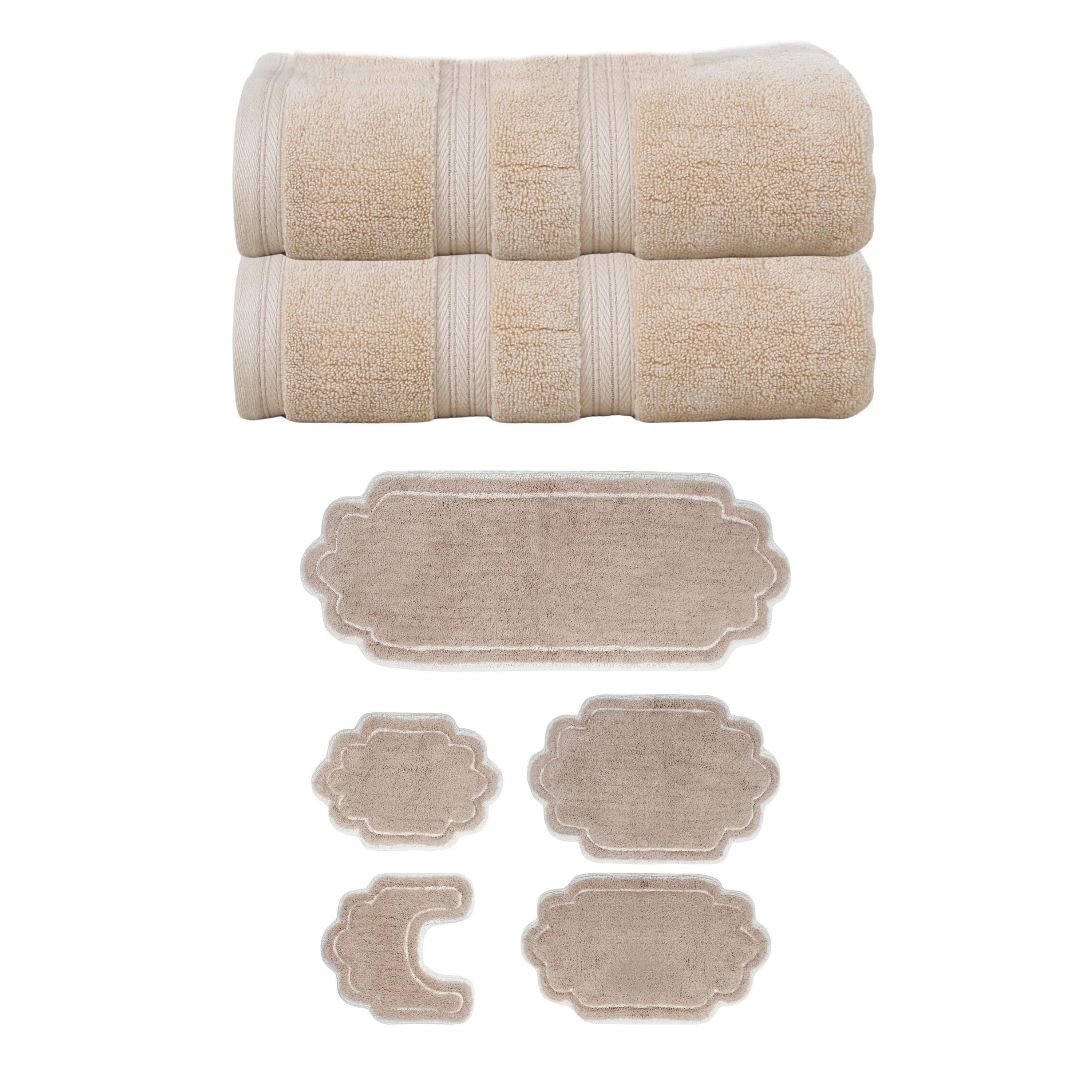 Home Weavers Allure Collection 100% Soft Cotton Super Absorbent 2 Pcs Bath Towel Set & 5 Pc Bath Rug Set, Machine Wash(Set of 7)