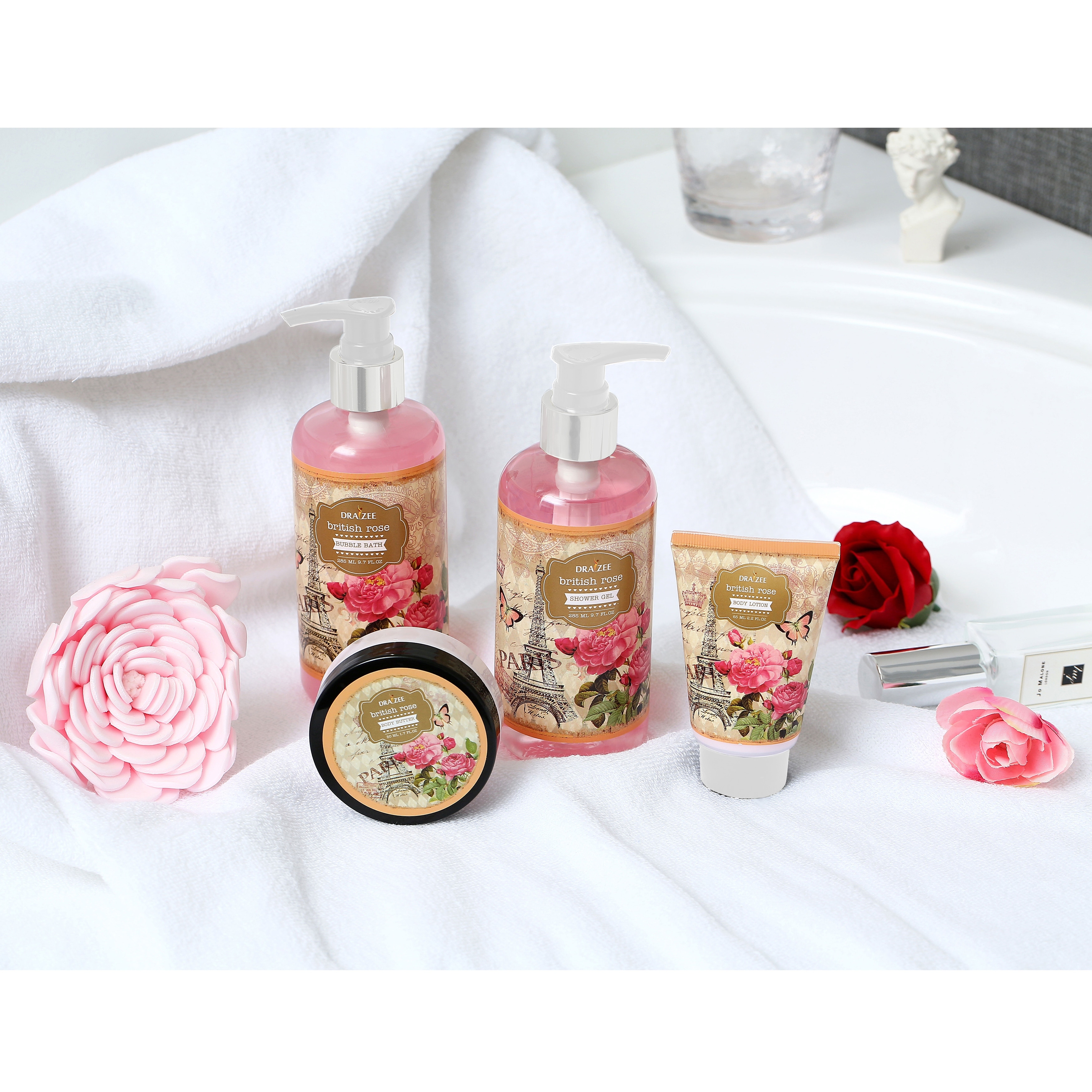 Draizee Set of 4 Heel Shoe Spa Gift Baskets – Rose, Cherry, Citrus, Vanilla Scented 20 Pcs Bath Essentials Baskets