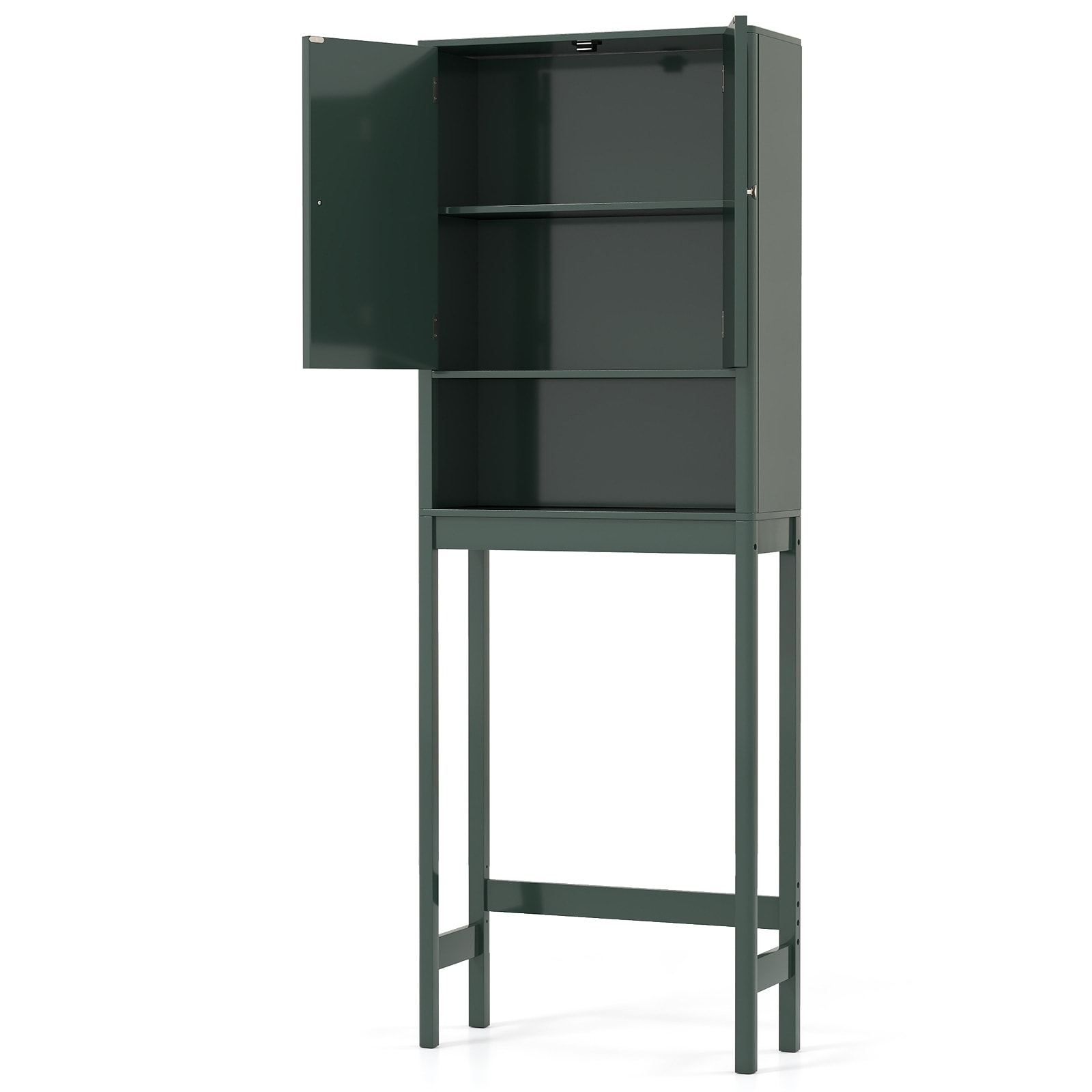 Over the Toilet Storage Cabinet with Double Doors and Adjustable Shelves Bathroom Organizer Green - 23.5" x 9" x 66"
