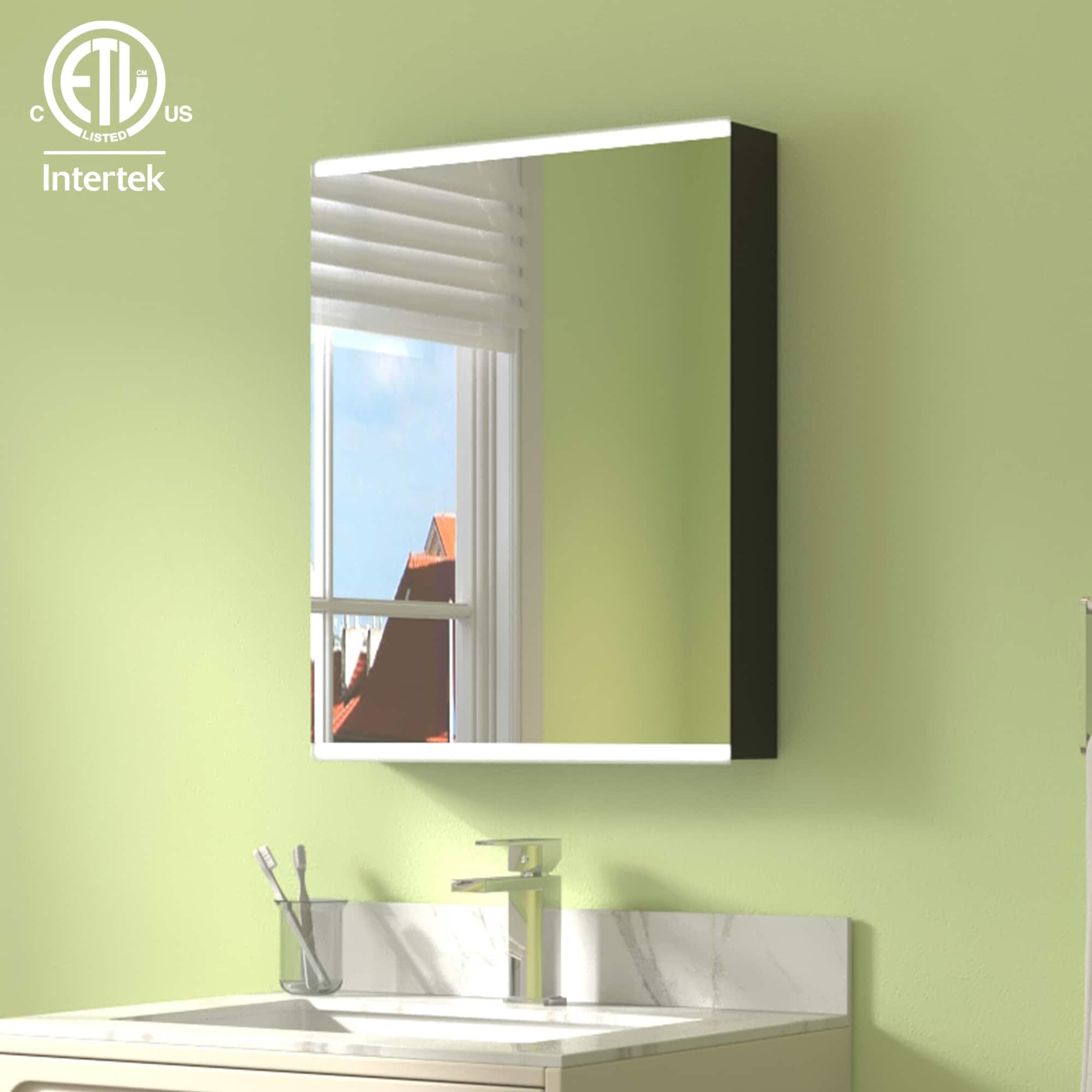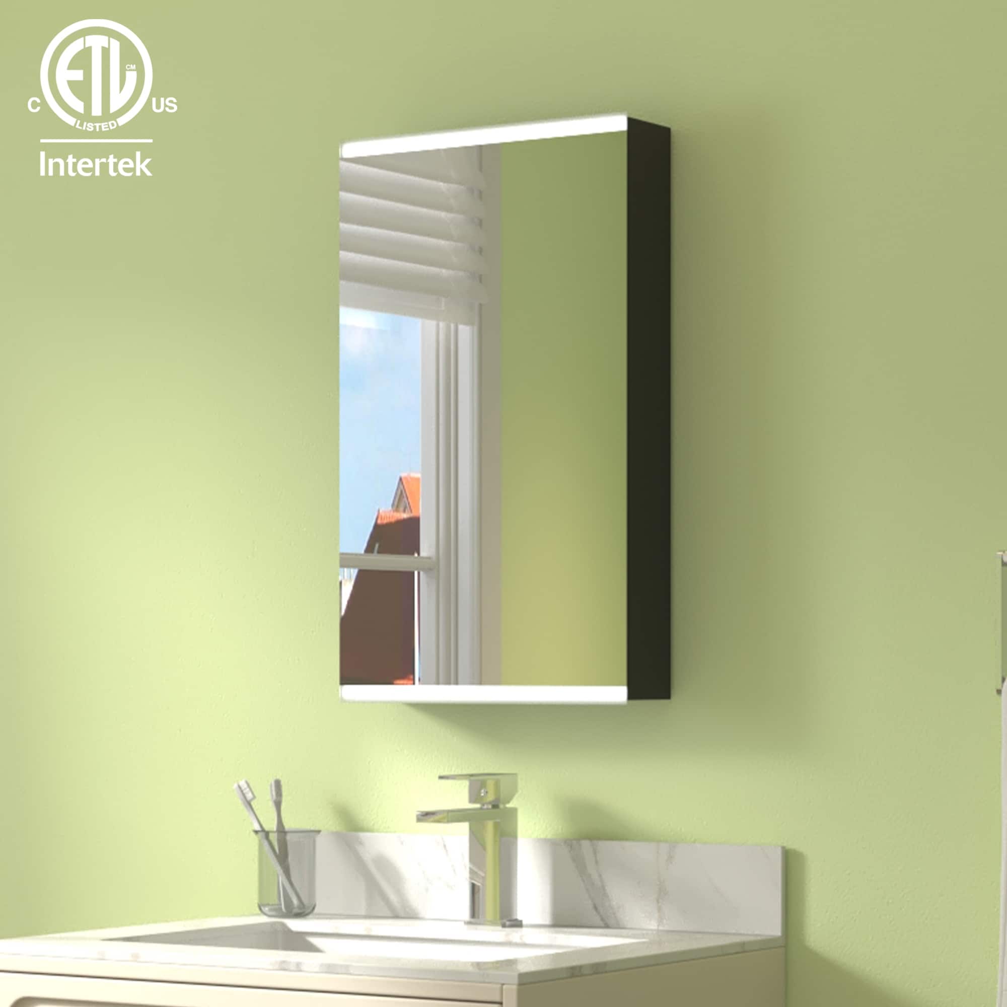 Bathroom Medicine Cabinet, Aluminum, Recessed/Surface Mount, Mirrored Interior w/LED