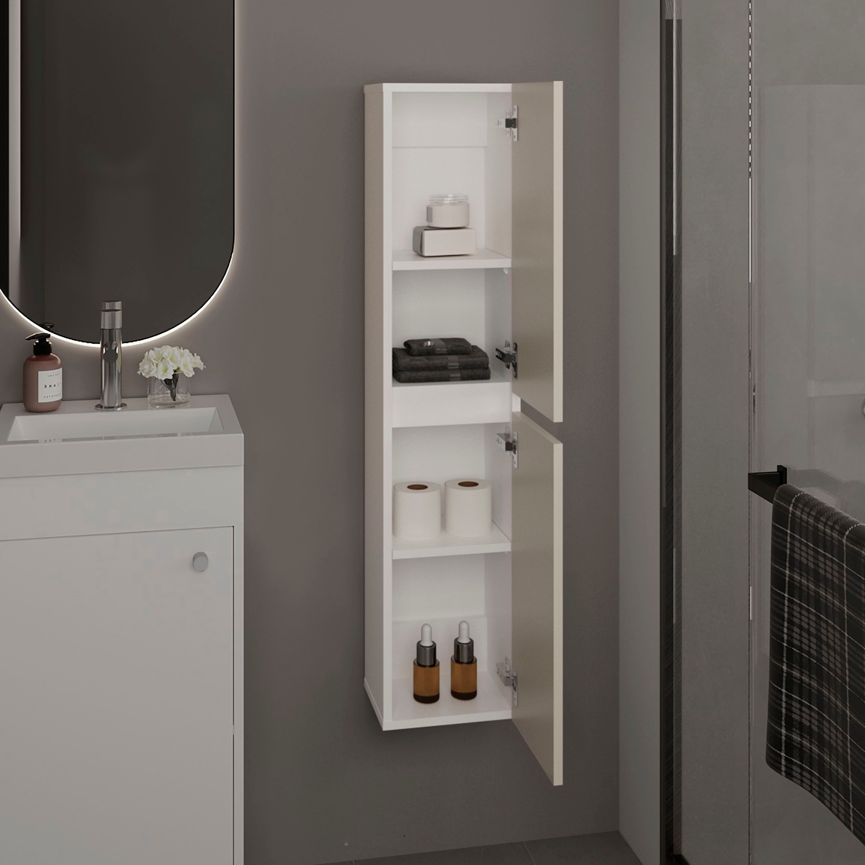 Bathroom Cabinet, 2 Doors, 4 Shelves, White