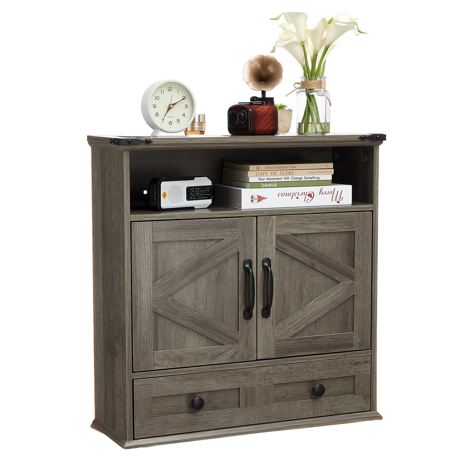 Farmhouse Freestanding Linen Tower with Shelves, Drawer, and Doors