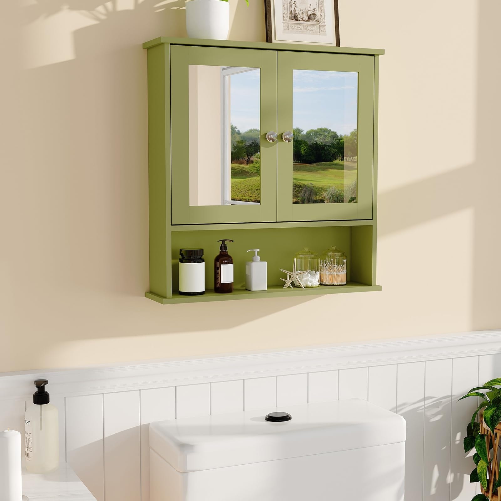 22.2" Mirror Medicine Cabinet & Wall Mounted Storage Cabinet Set, Adjustable Shelf Bathroom Organizer