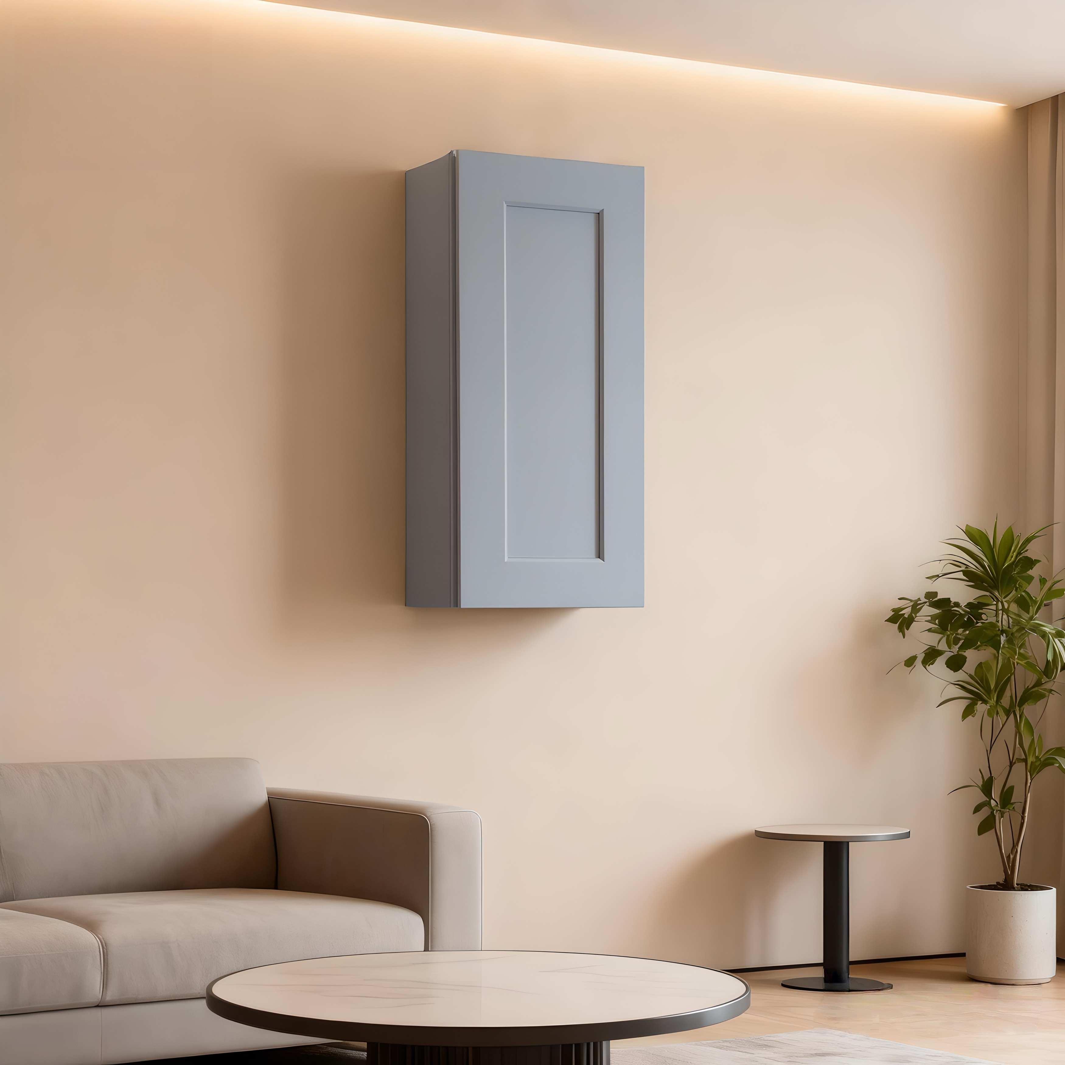 Dark Gray Solid Wood Single Door Wall Cabinet 1 Door and 2 Shelves for Kitchen Storage, Bathroom Storage, Laundry