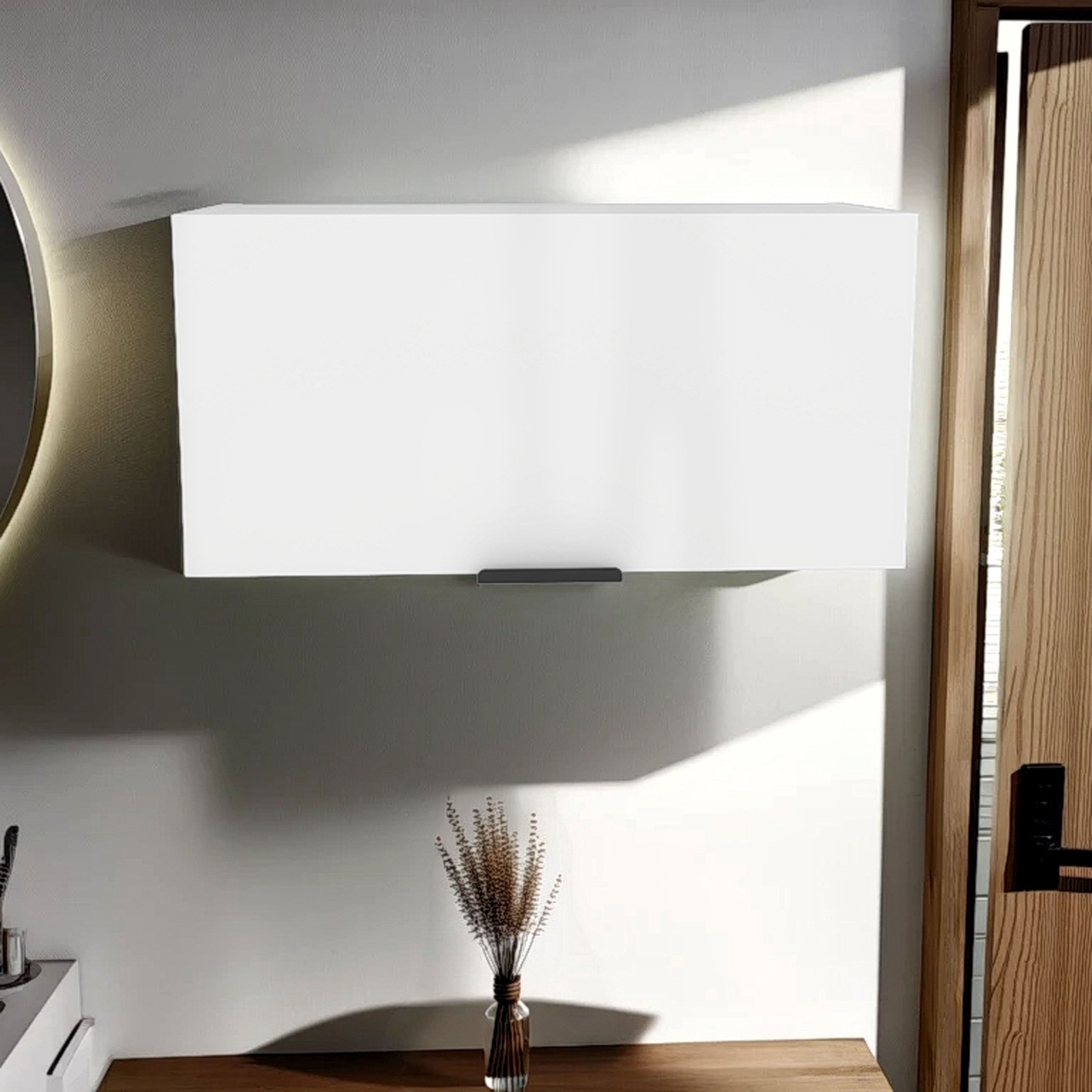 Coolidge Pull-Up Wall Cabinet, Single Shelf Storage Unit, Modern Compact Design for Bathroom or Living Room Organization, White
