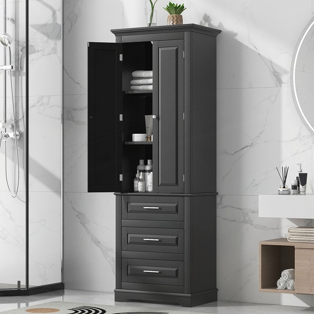 Tall Storage Cabinet with Three Drawers for Bathroom