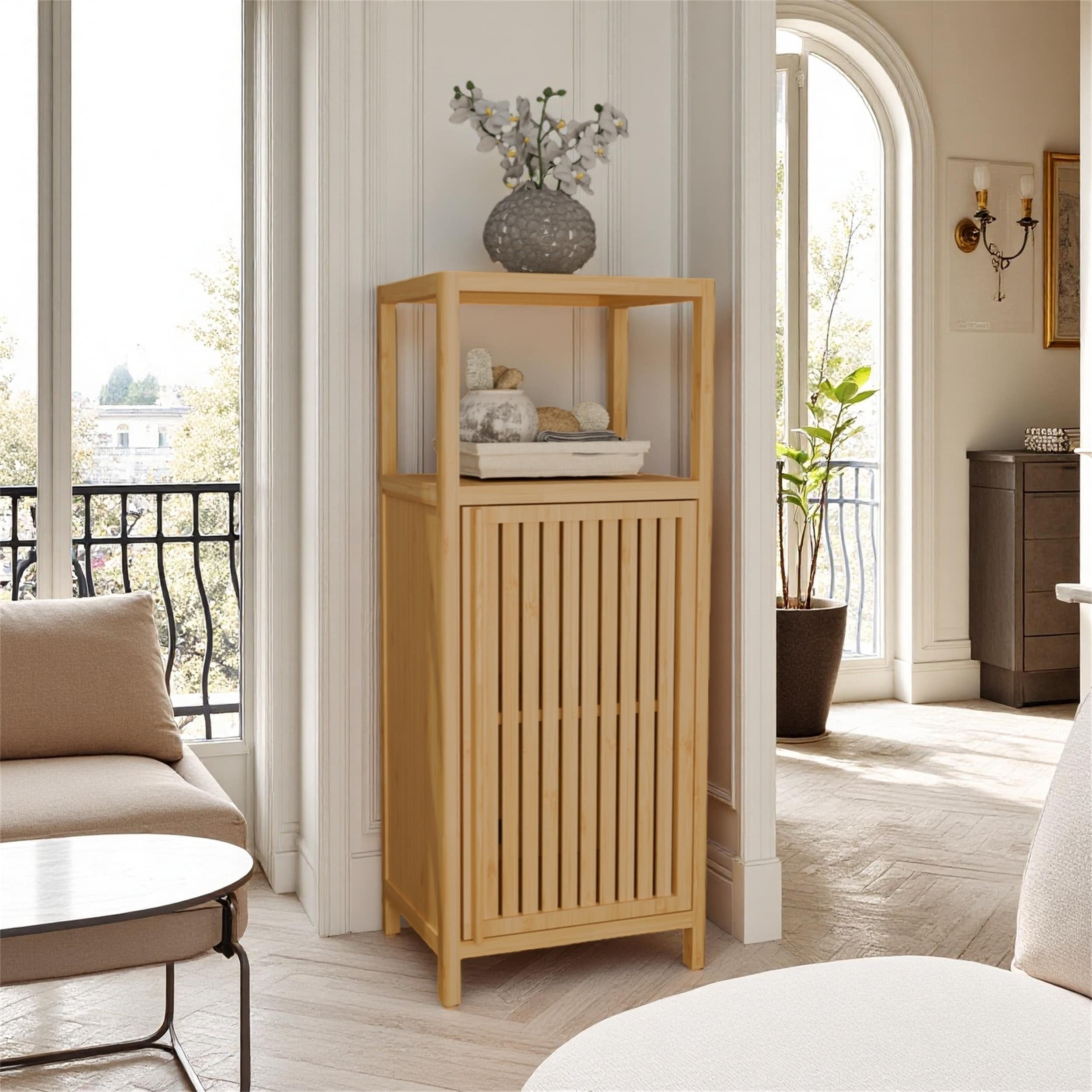 Slim Bamboo Storage Cabinet with 2 Open Shelves and Door, Space Saving