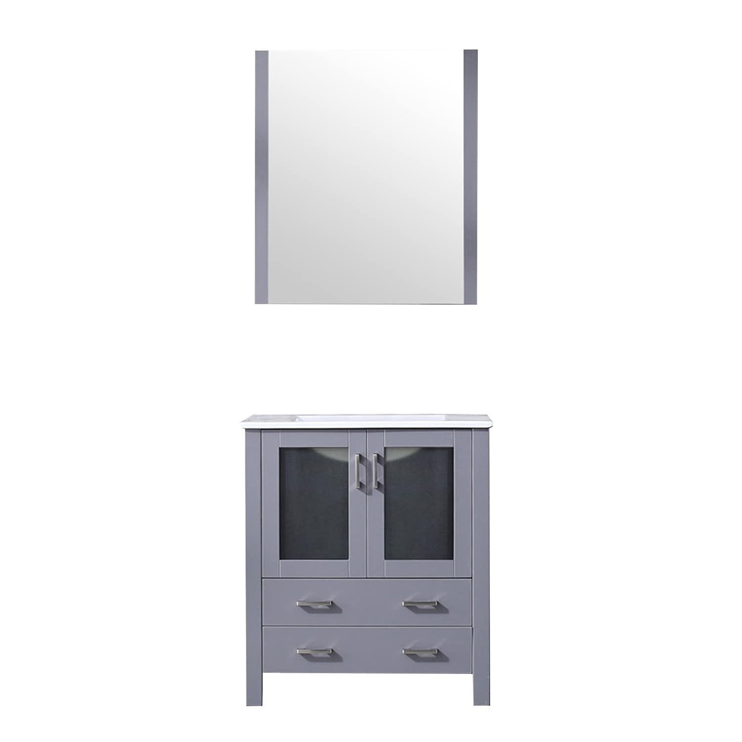 Dark Grey Bath Vanity 30 in. W x 18.25 in. D, White Ceramic Top, and 28 in. Mirror