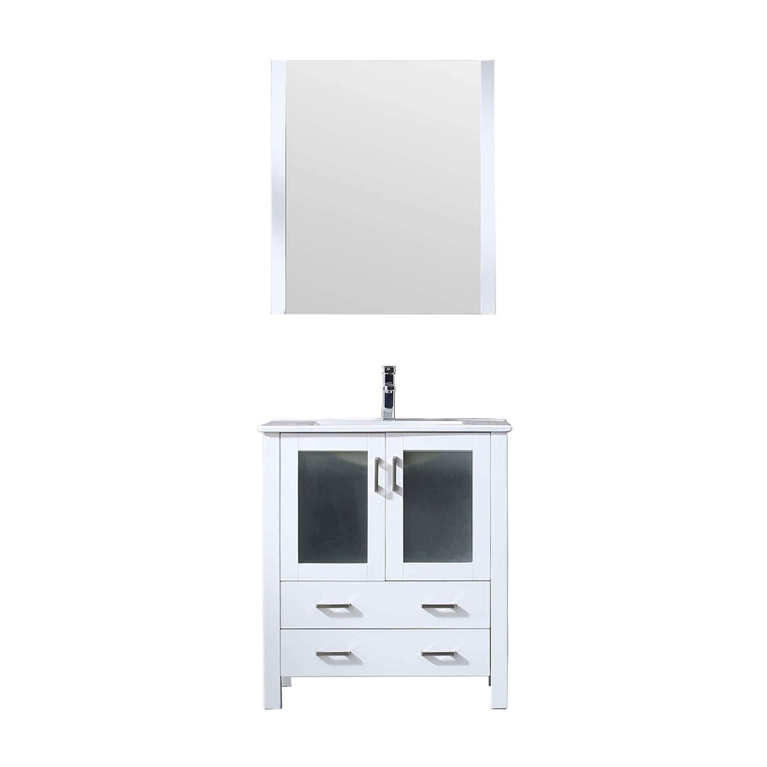 White Bath Vanity 30 in. W x 18.25 in. D, White Ceramic Top, Faucet Set, and 28 in. Mirror