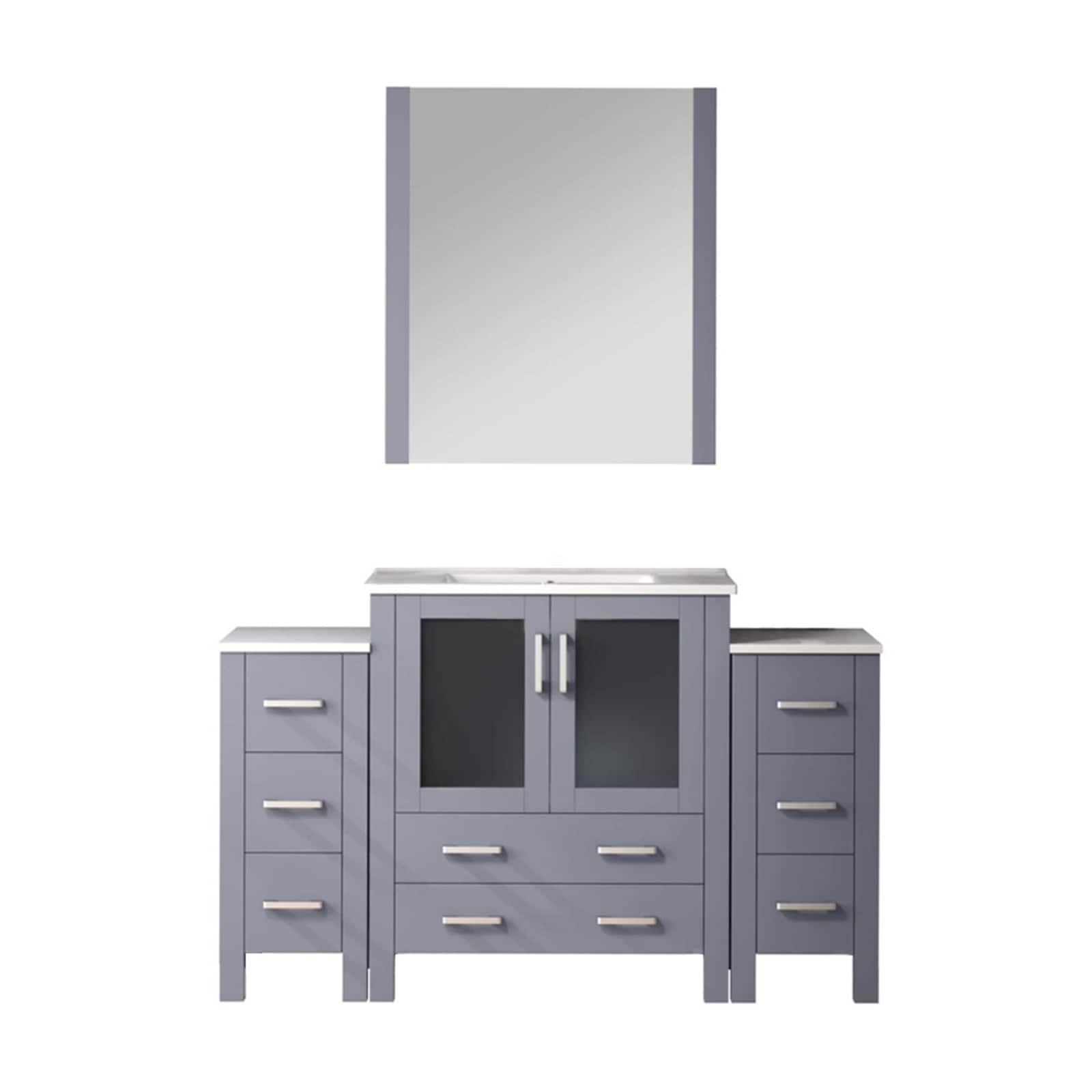 Dark Grey Single Bath Vanity 54 in. W x 18.25 in. D, with Side Cabinets, White Ceramic Top, and 28 in. Mirror