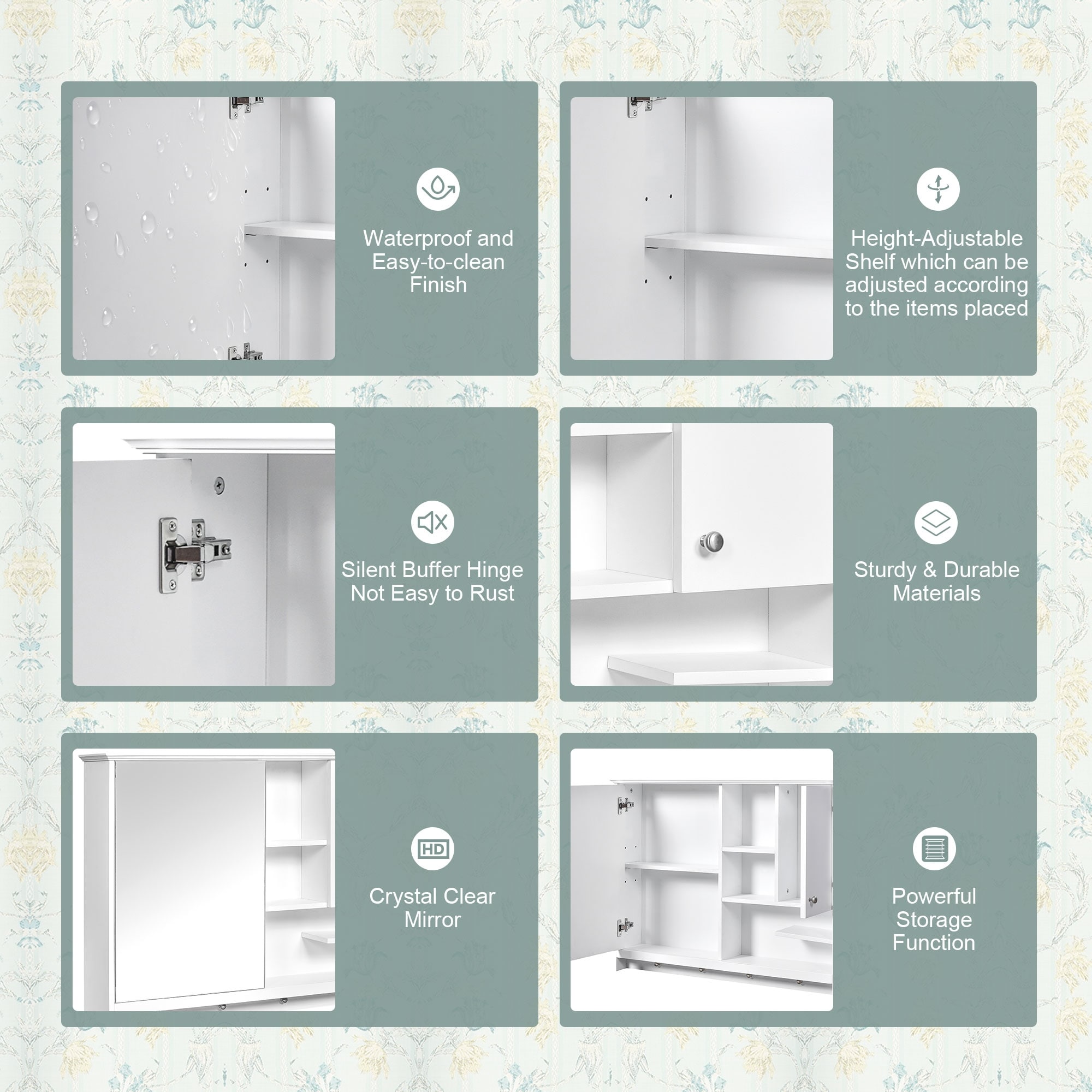 Wall-Mounted Bathroom Storage Cabinet with Mirror,6 Open Shelves,Modern and Space-Efficient Design