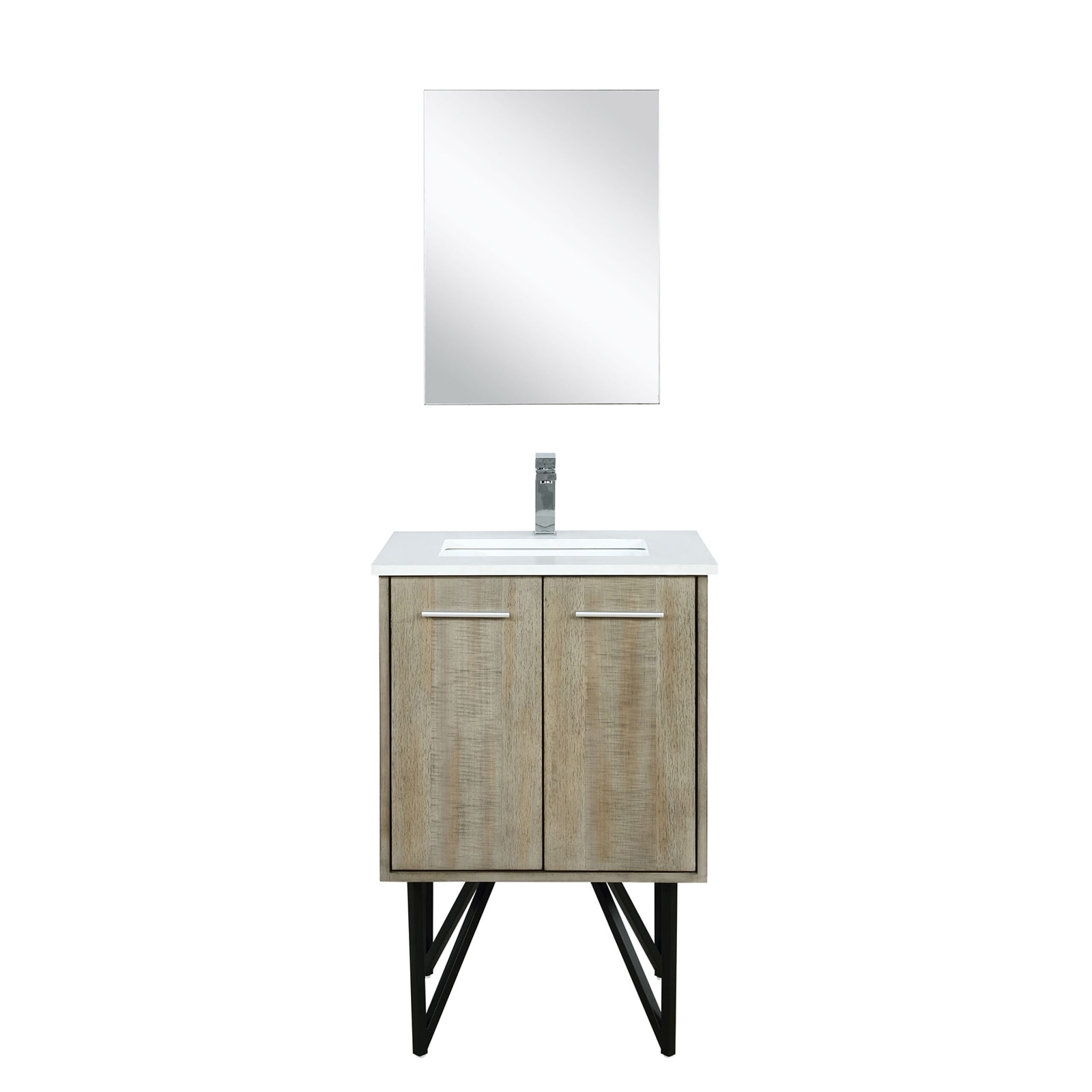 Rustic Acacia Bath Vanity 24 in. W x 20 in. D, Cultured Marble Top, Chrome Faucet Set and 18 in. Mirror