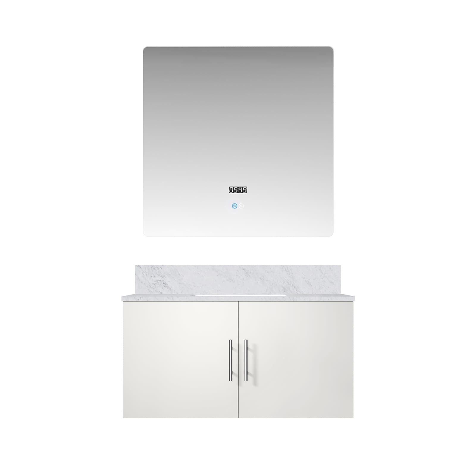 Glossy White Bath Vanity 36 in. W x 22 in. D, Carrara Marble Top, and 36 in. LED Mirror