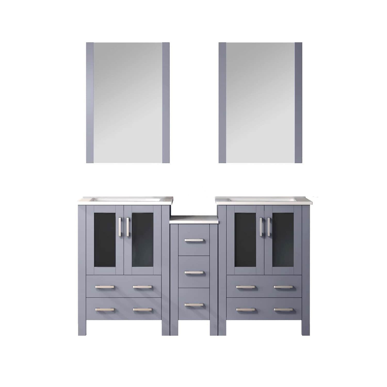 Dark Grey Double Bath Vanity 60 in. W x 18.25 in. D, with Side Cabinet, White Ceramic Top, and 22 in. Mirrors