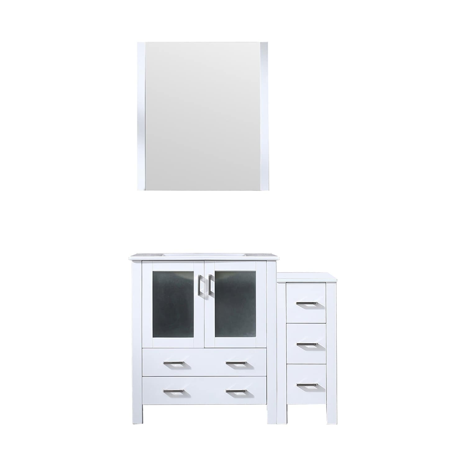 White Bath Vanity 42 in. W x 18.25 in. D, with Side Cabinet, White Ceramic Top, and 28 in. Mirror