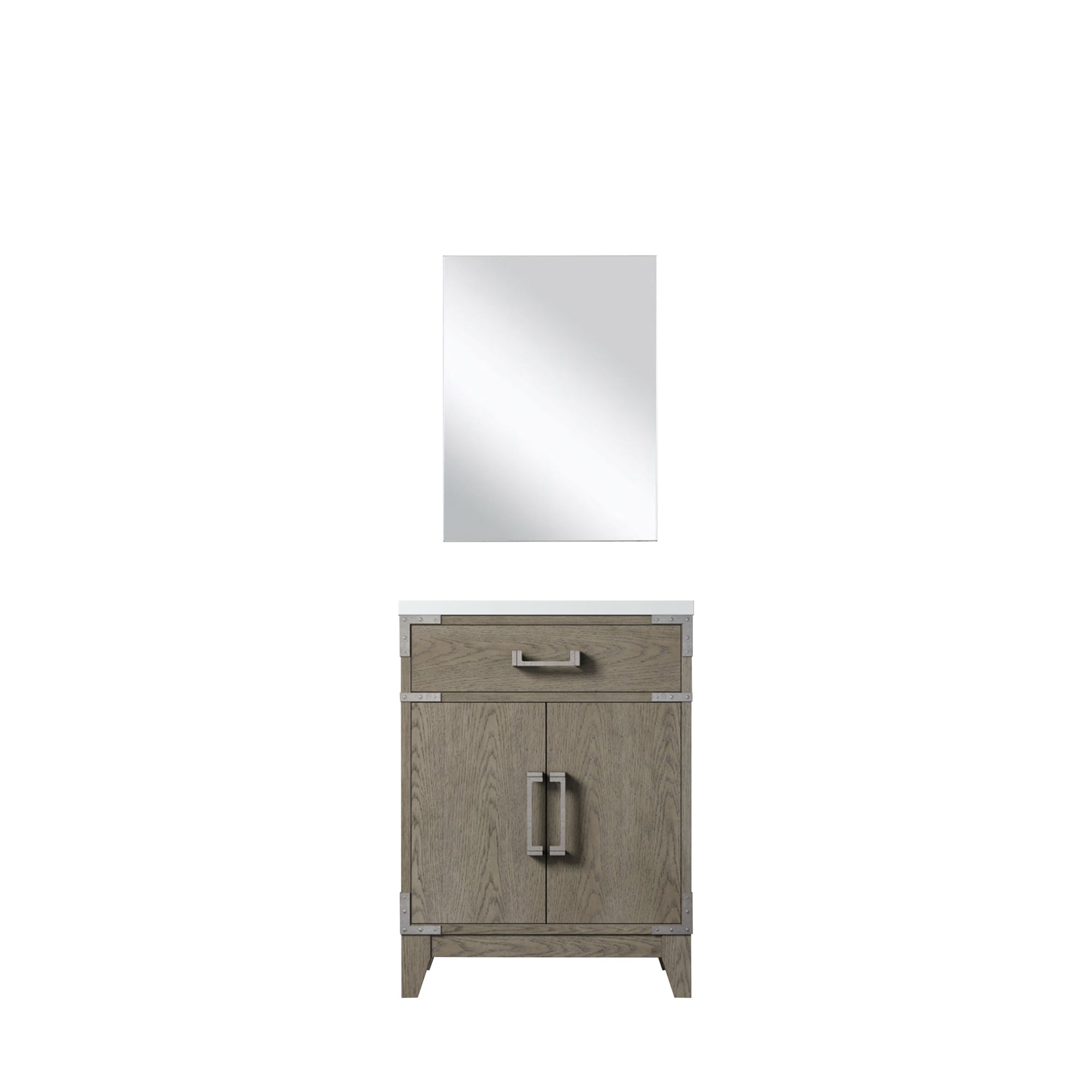 Grey Oak Single Bath Vanity 24 in. W x 18 in. D, Acrylic Countertop and 18 in. Mirror