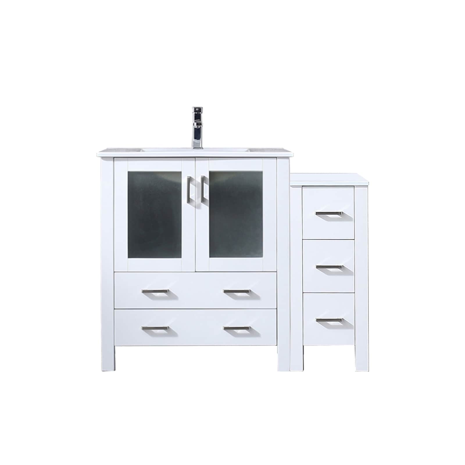 White Single Bath Vanity 42 in. W x 18.25 in. D, with Side Cabinet, White Ceramic Top, and Faucet Set