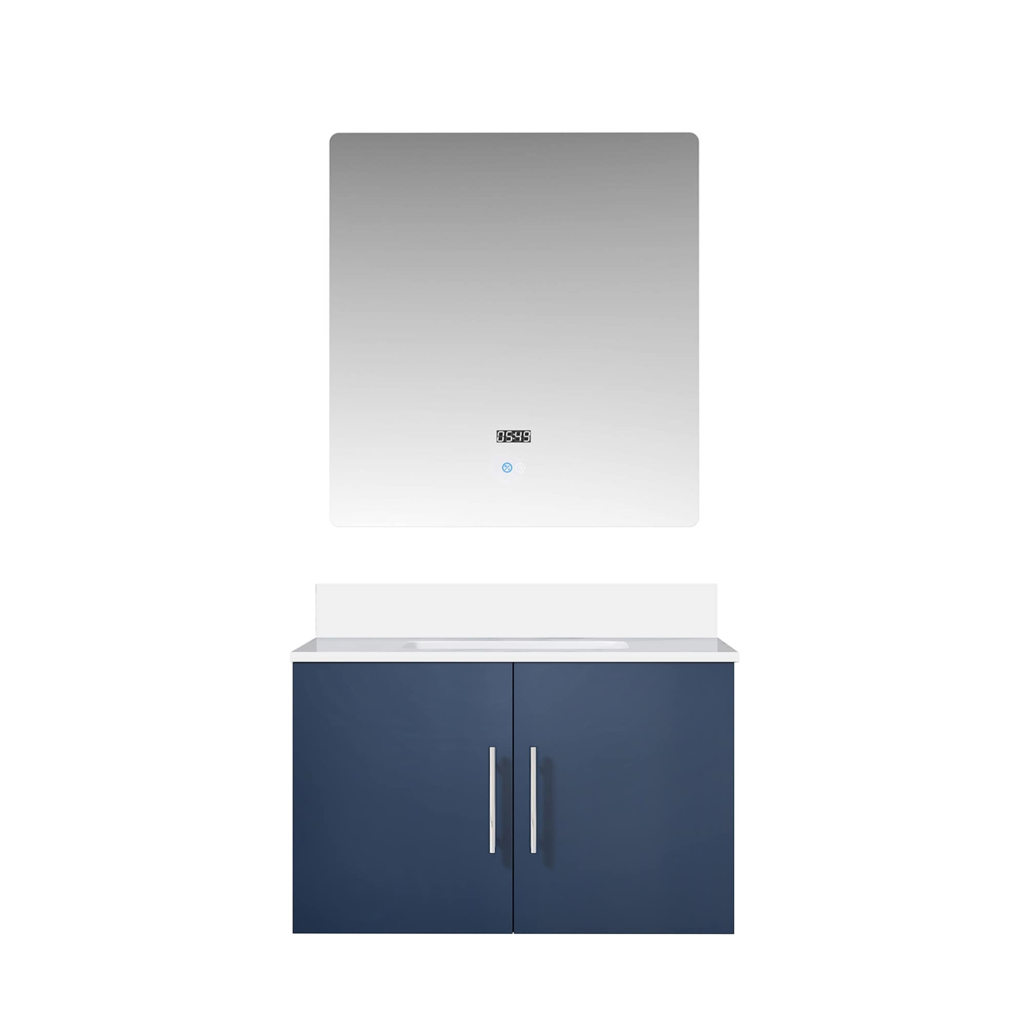 Navy Blue Bath Vanity 30 in. W x 22 in. D, Cultured Marble Top, and 30 in. LED Mirror