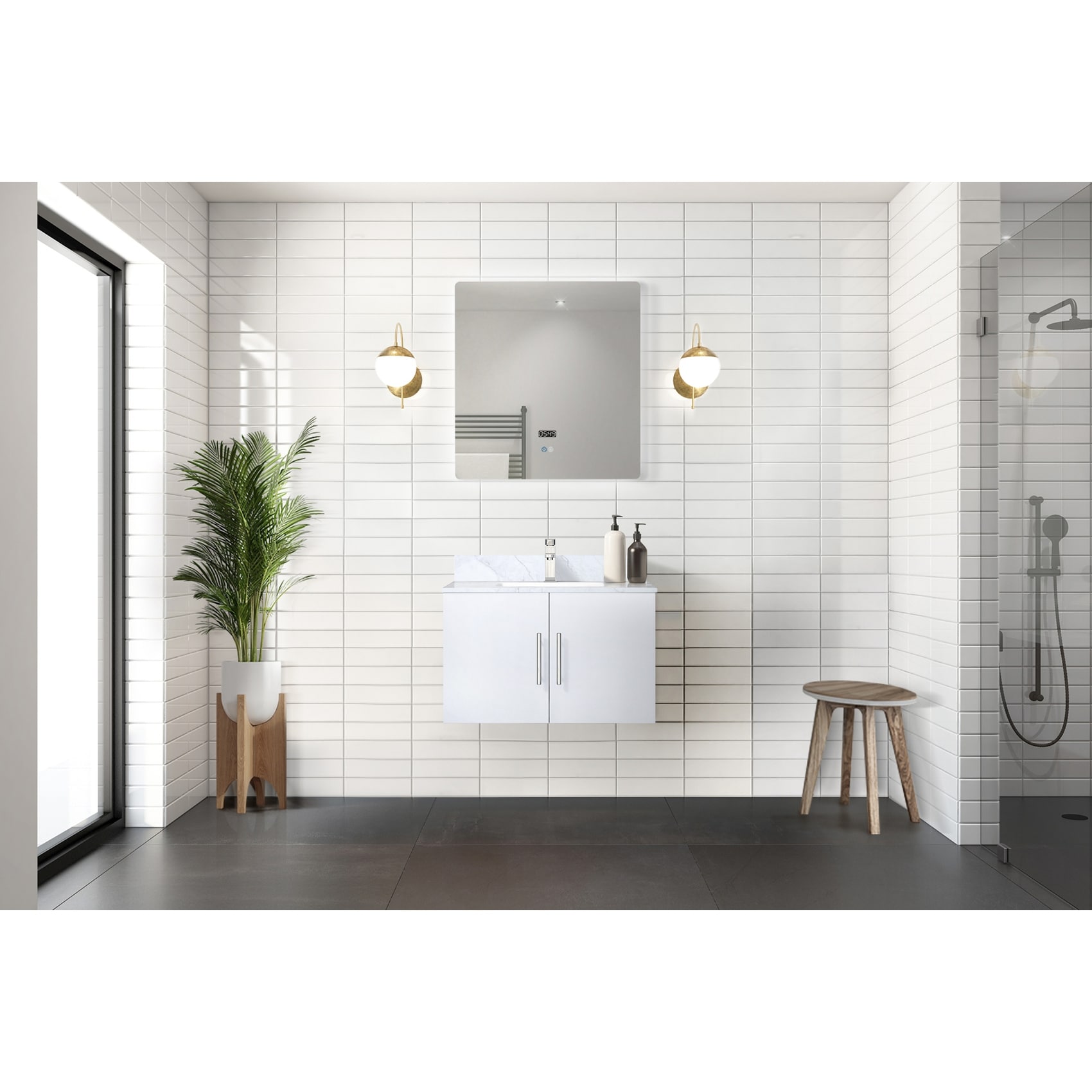Glossy White Bath Vanity 30 in. W x 22 in. D, Carrara Marble Top, Faucet Set, and 30 in. LED Mirror