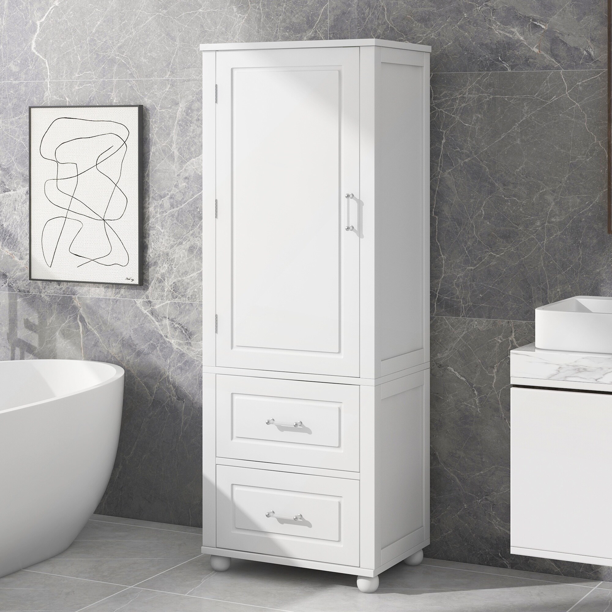 Tall Bathroom Storage Cabinet with Two Drawers and Adjustable Shelf