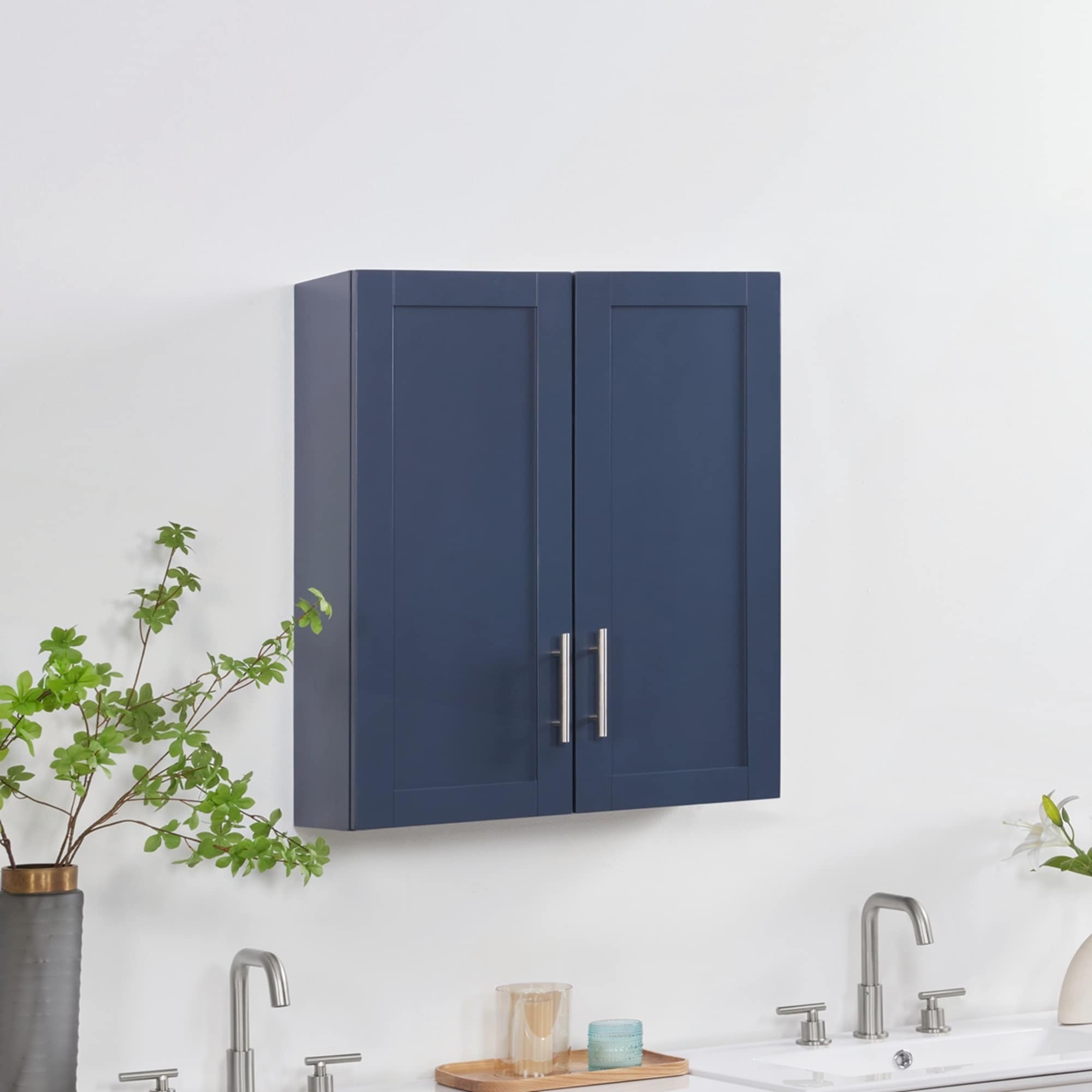 Wood Hanging Cabinet with Doors and Adjustable Shelves for Bathroom and Kitchen Storage Solutions