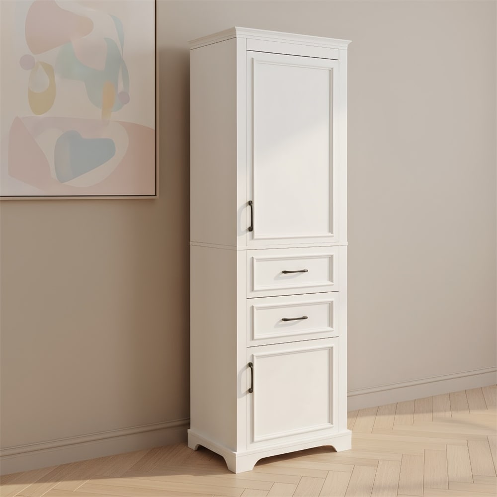 Tall Bathroom Storage Cabinet with Two Drawers and Adjustable Shelf