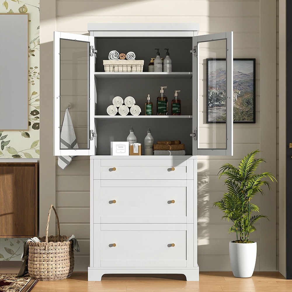 67.7" Traditional Tall Bathroom Cabinet, Freestanding Storage with Door, 3 Drawers & Adjustable Shelf, Gold Handles