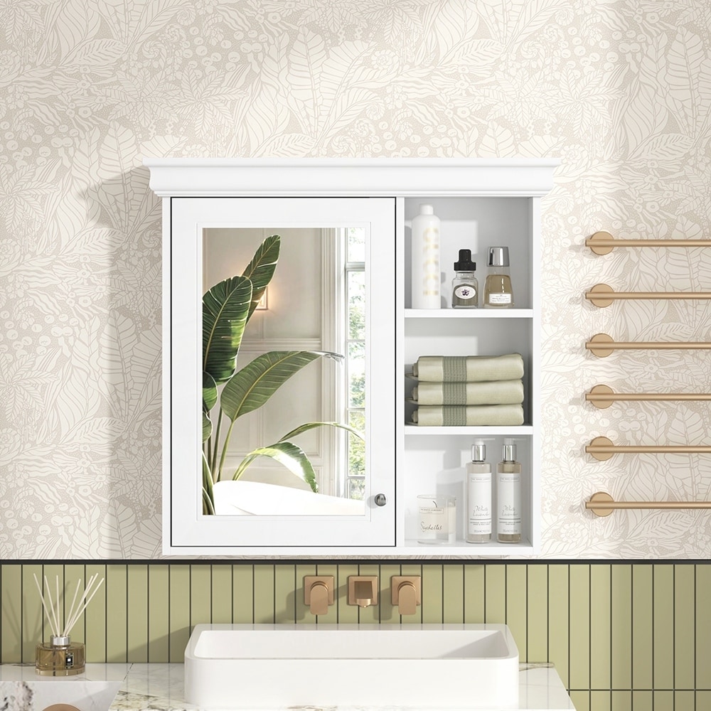 35'' Bathroom Mirror Cabinet with Storage, Wall Mounted Medicine Cabinet with Open Shelves and 1 Door