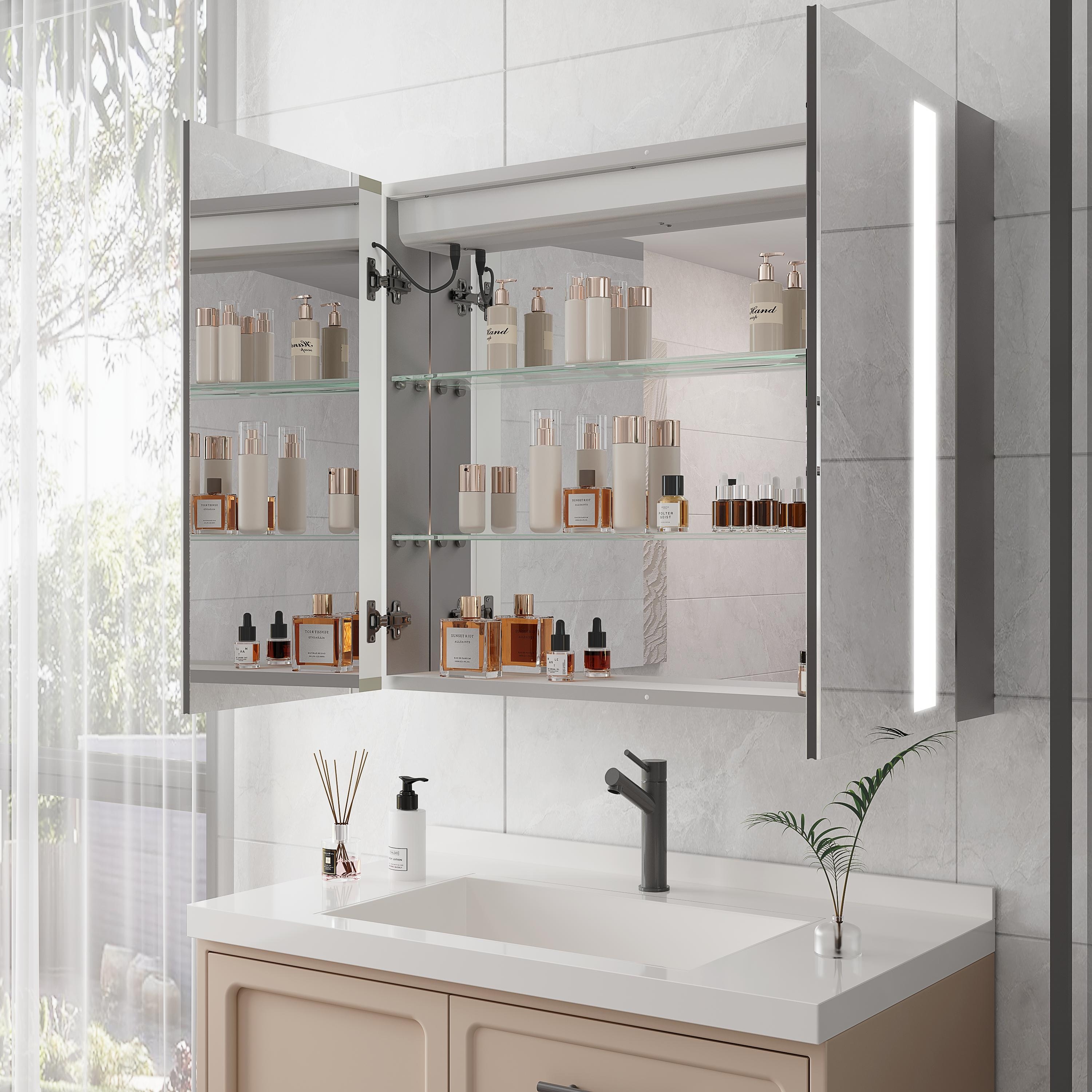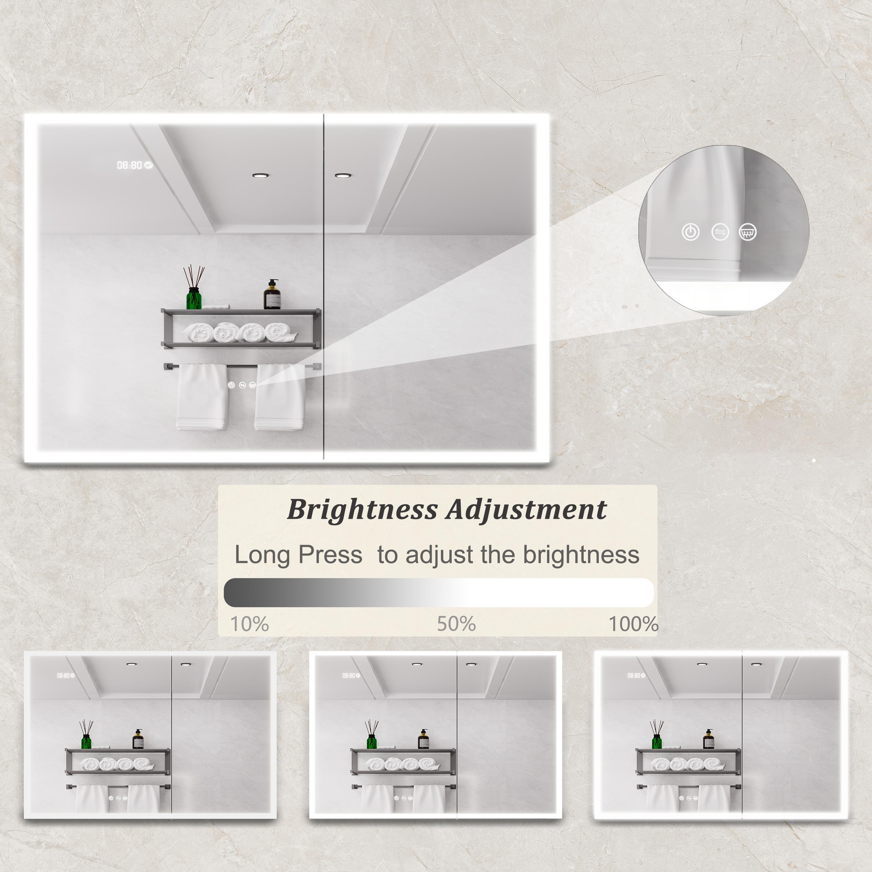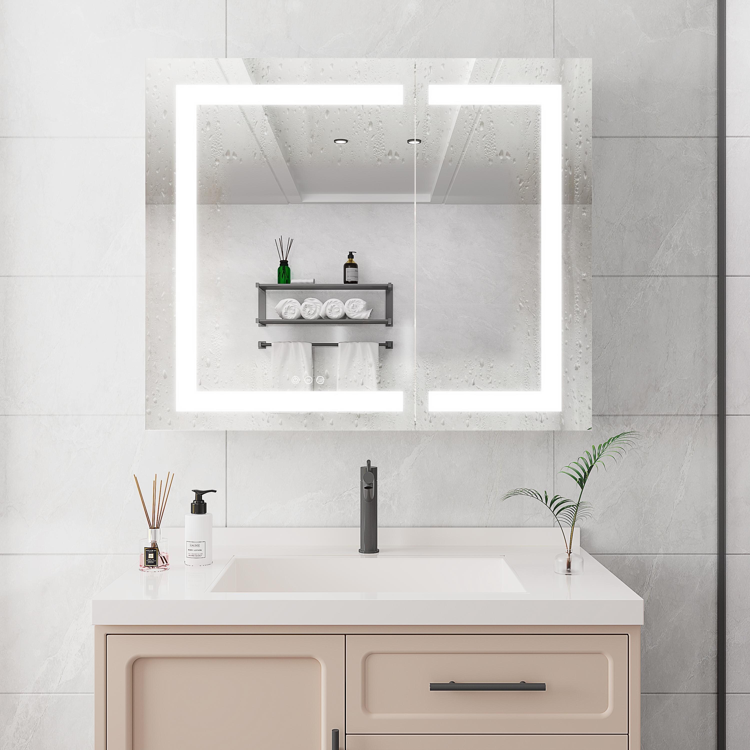 Double Door Bathroom Cabinet Medicine Cabinet with LED Vanity Mirror and Anti-Fog