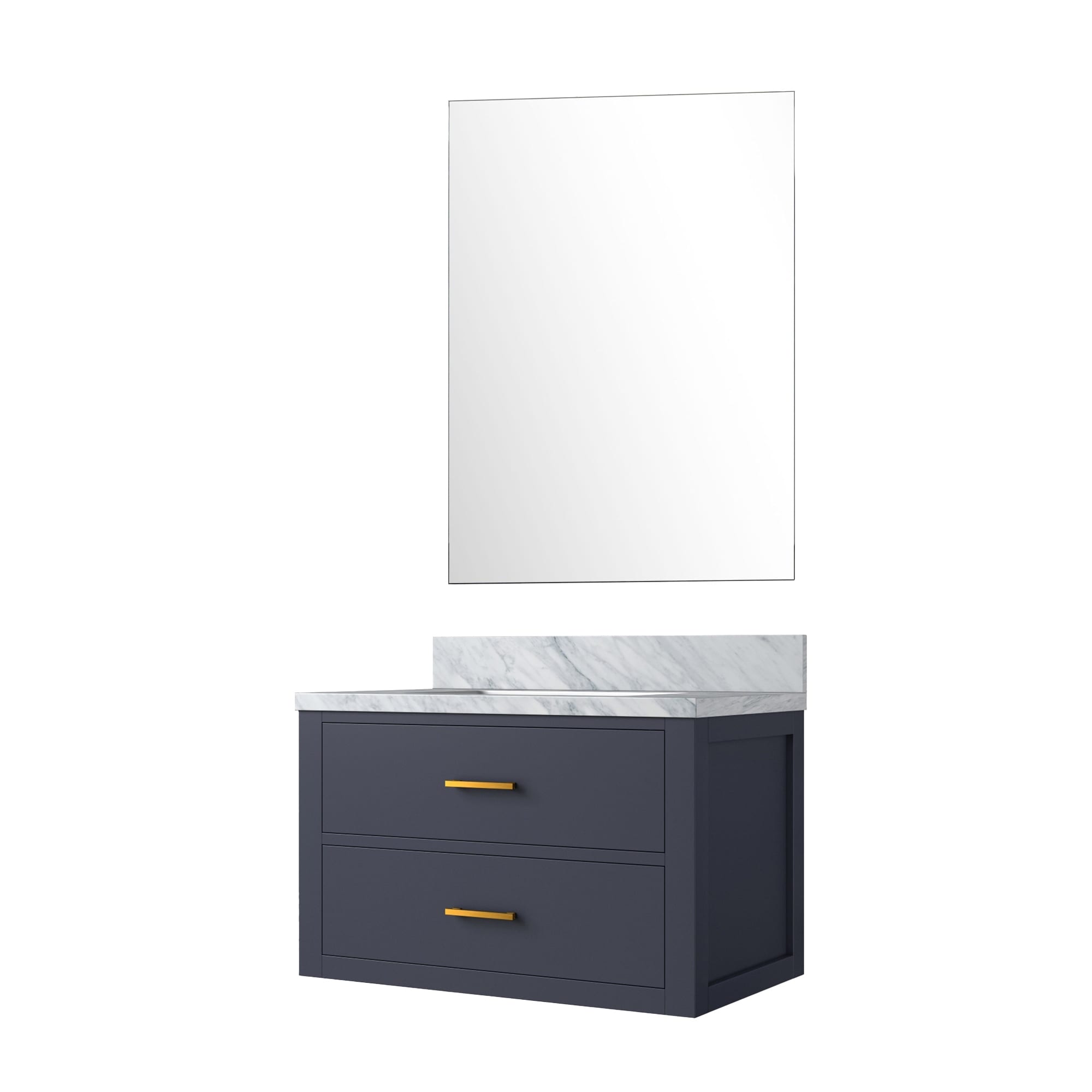 Blue Single Bath Vanity 30 in. W x 22 in. D, Carrara Marble Countertop and 28 in. Mirror