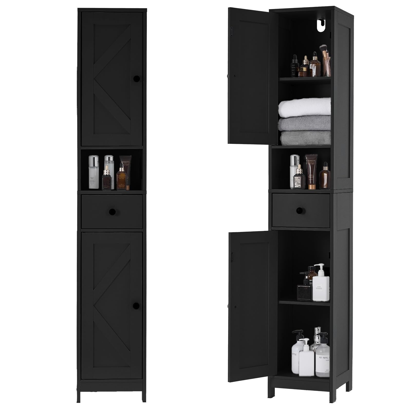 Space Saving Bathroom Cabinet, 66" Narrow Storage Cabinet with Adjustable Shelves