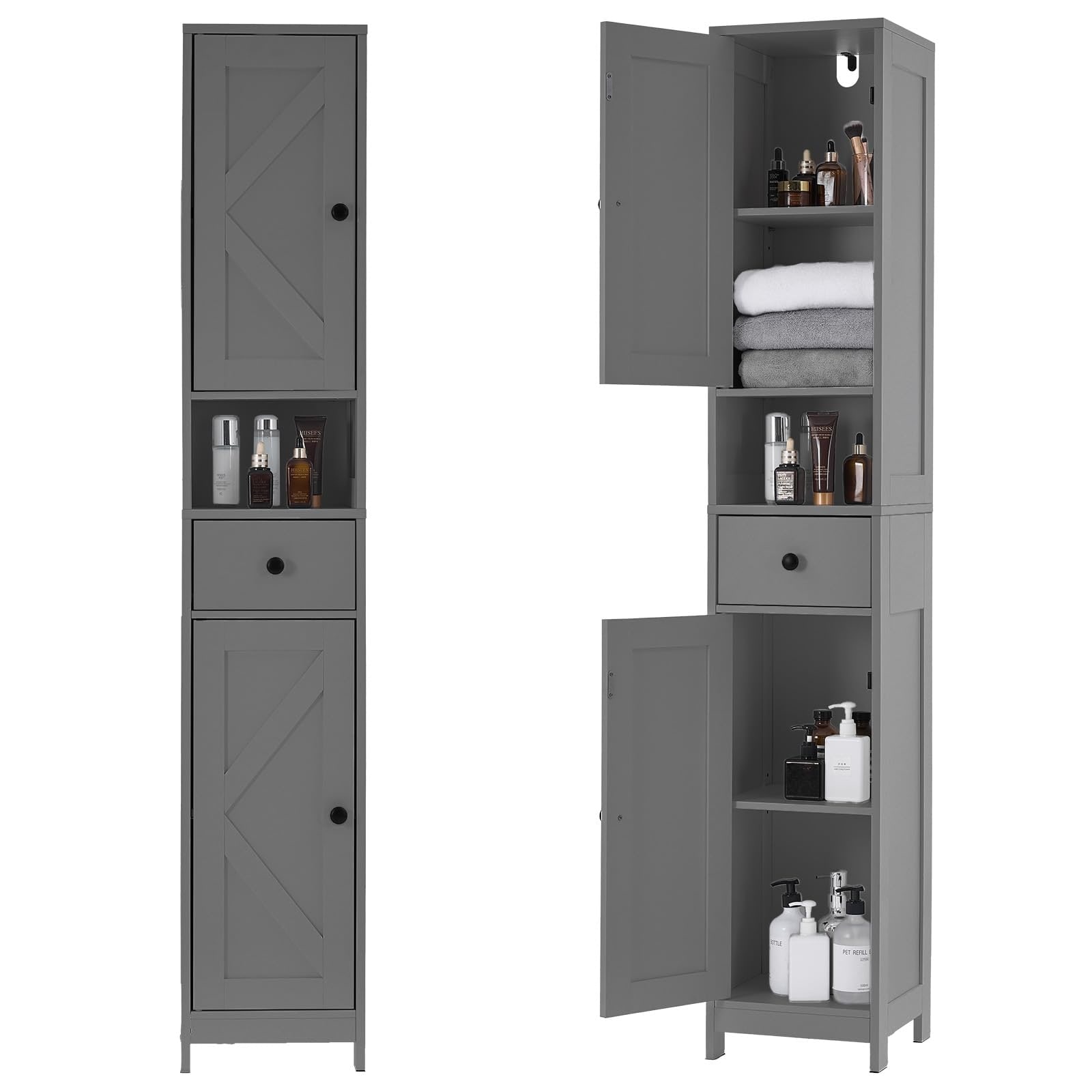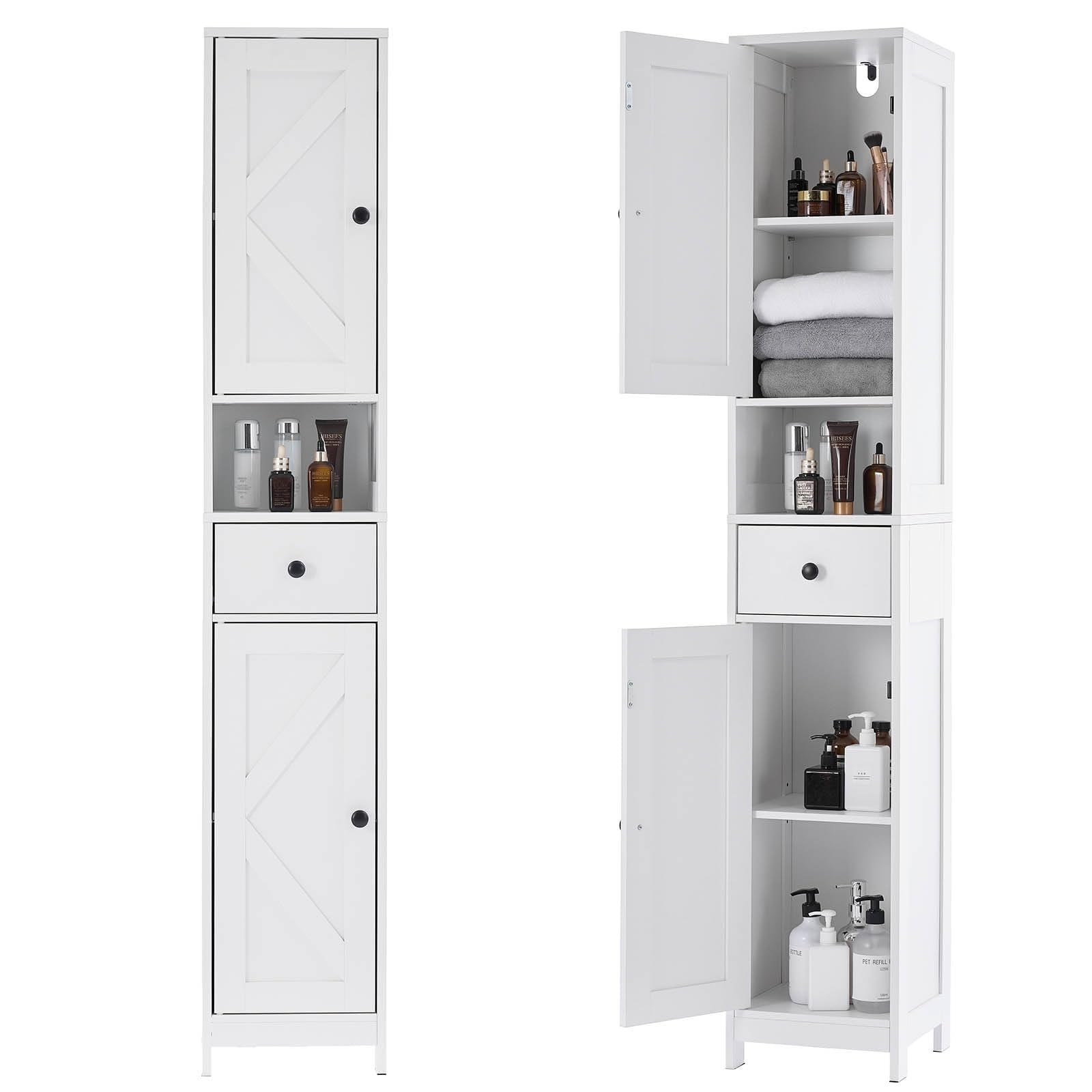 Space Saving Bathroom Cabinet, 66" Narrow Storage Cabinet with Adjustable Shelves