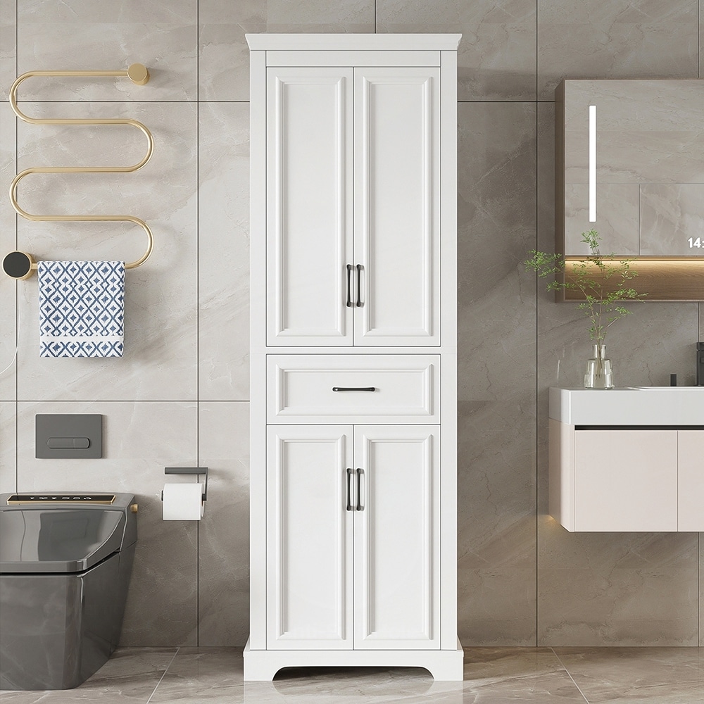 Modern Bathroom Cabinet with Doors, 1 Drawer, 3-Layer Storage Shelves and Adjustable Shelves, for Bathrooms, White