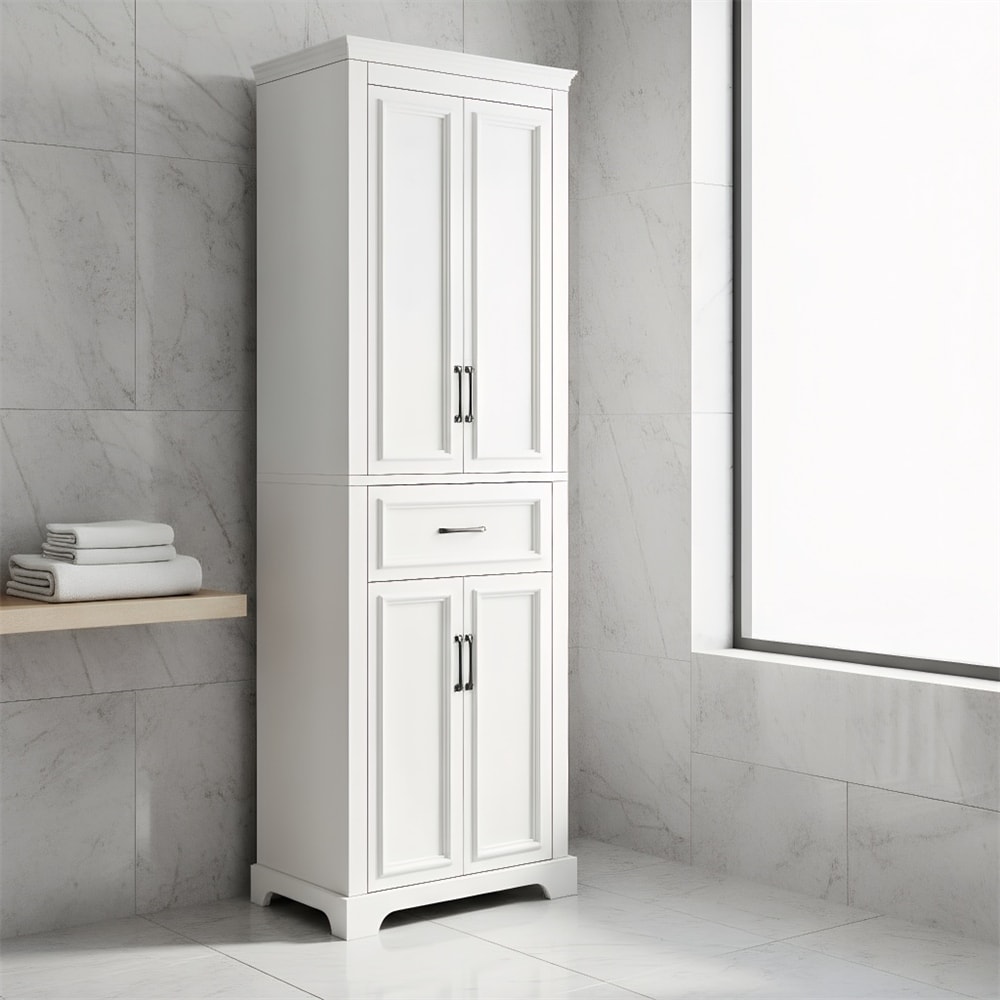 White Triangle Tall Cabinet with 3 Drawers and Adjustable Shelves for Bathroom, Kitchen or Living Room