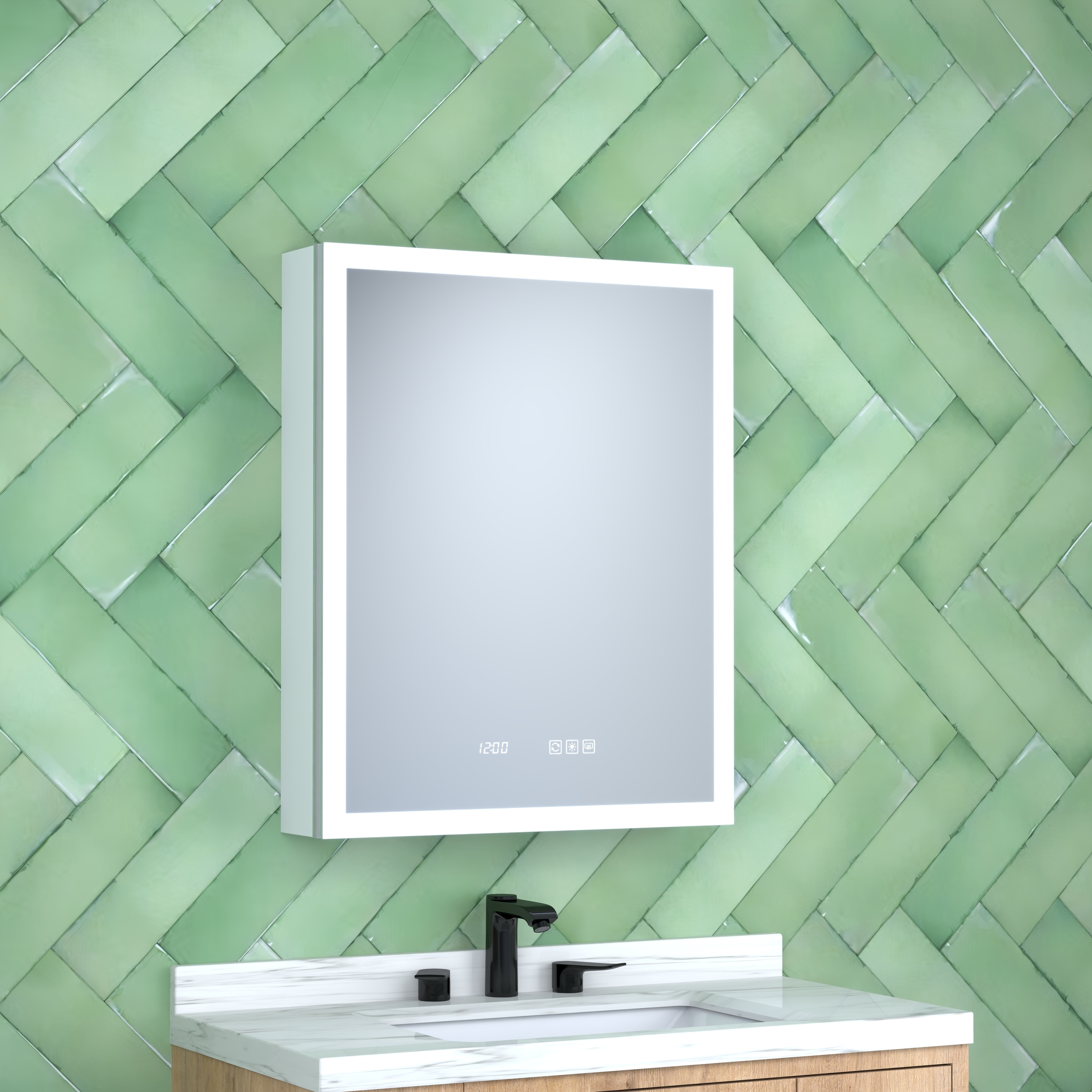 Bathroom Medicine Cabinet, Aluminum, Recessed/Surface Mount, Mirrored Interior w/LED