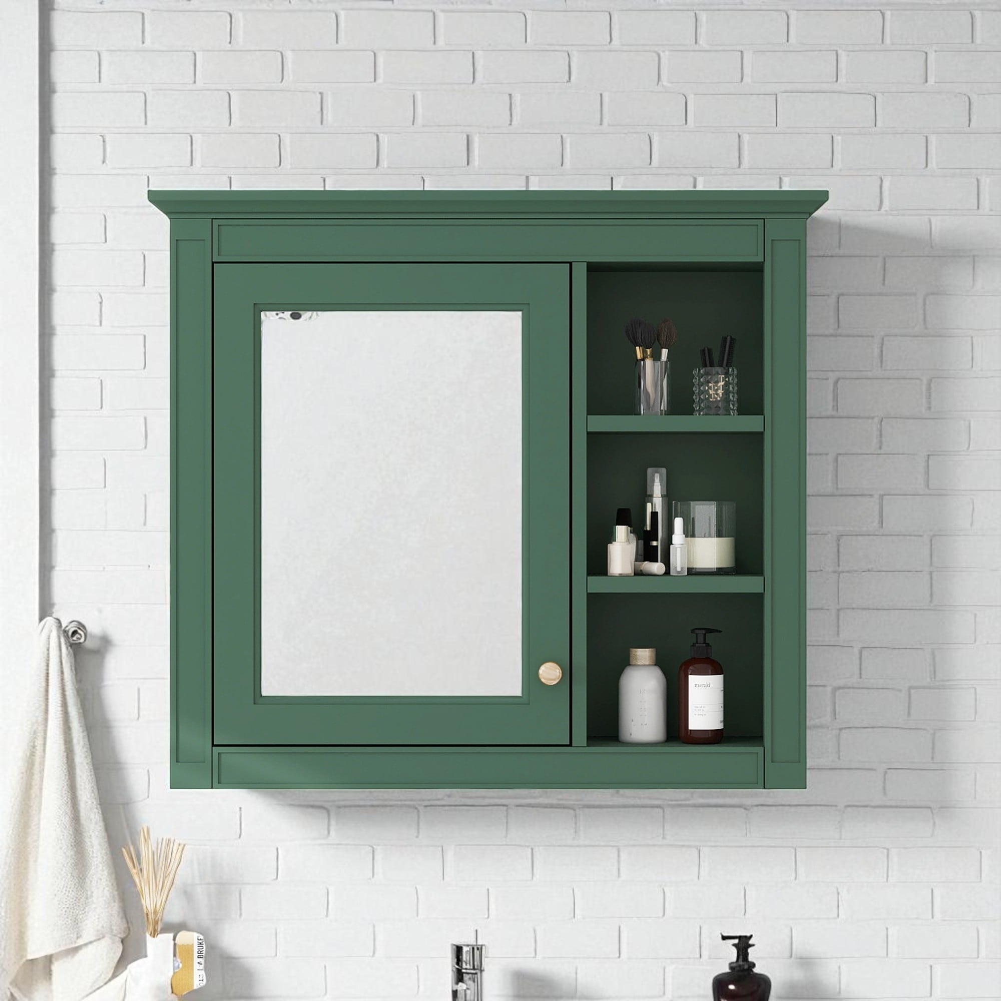 Modern Bathroom Wall Cabinet Medicine Cabinet with Mirror, 3 Open Compartments, Adjustable Shelf and Vintage Handle