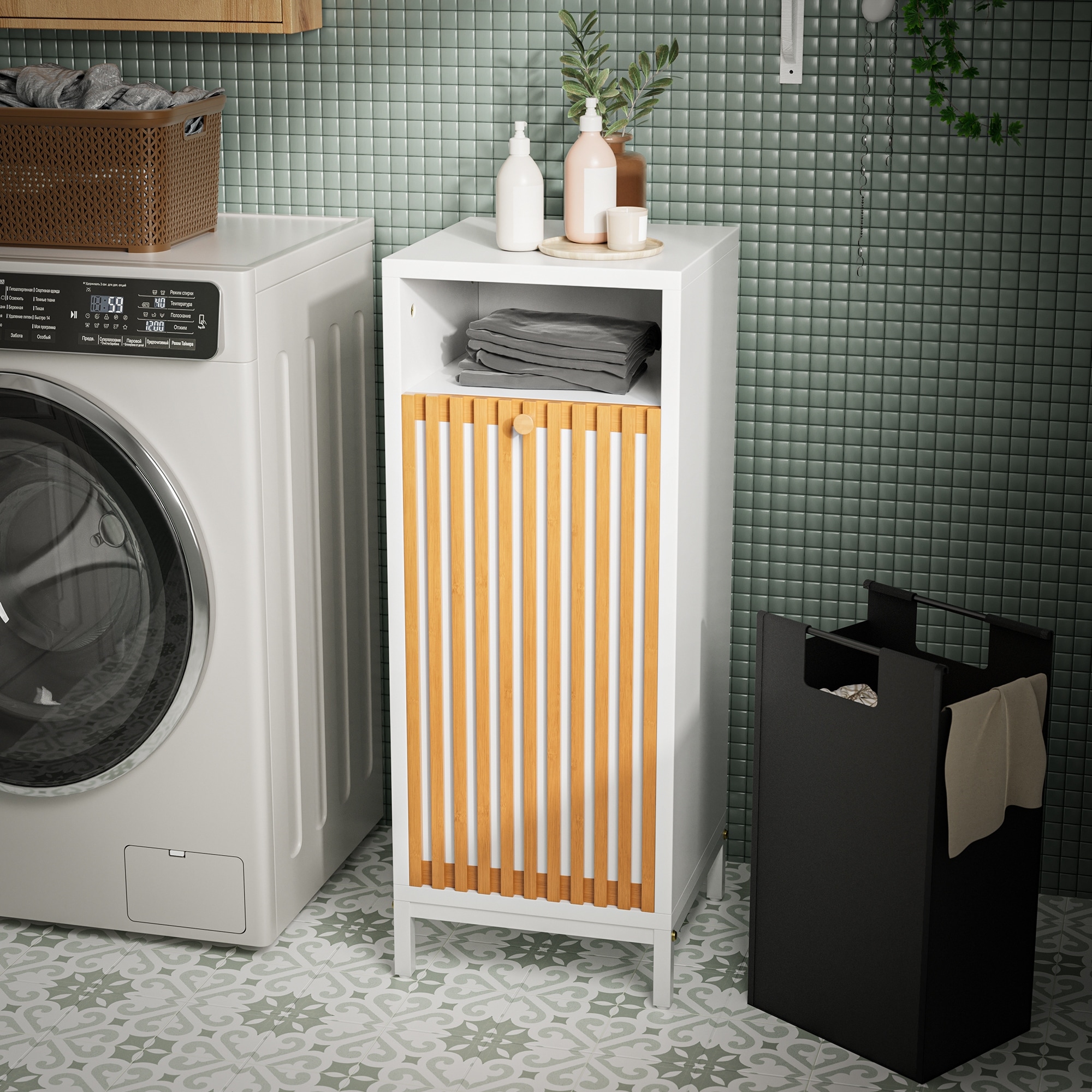 Bathroom Side Cabinet with Bamboo Front & Hamper - Natural/White