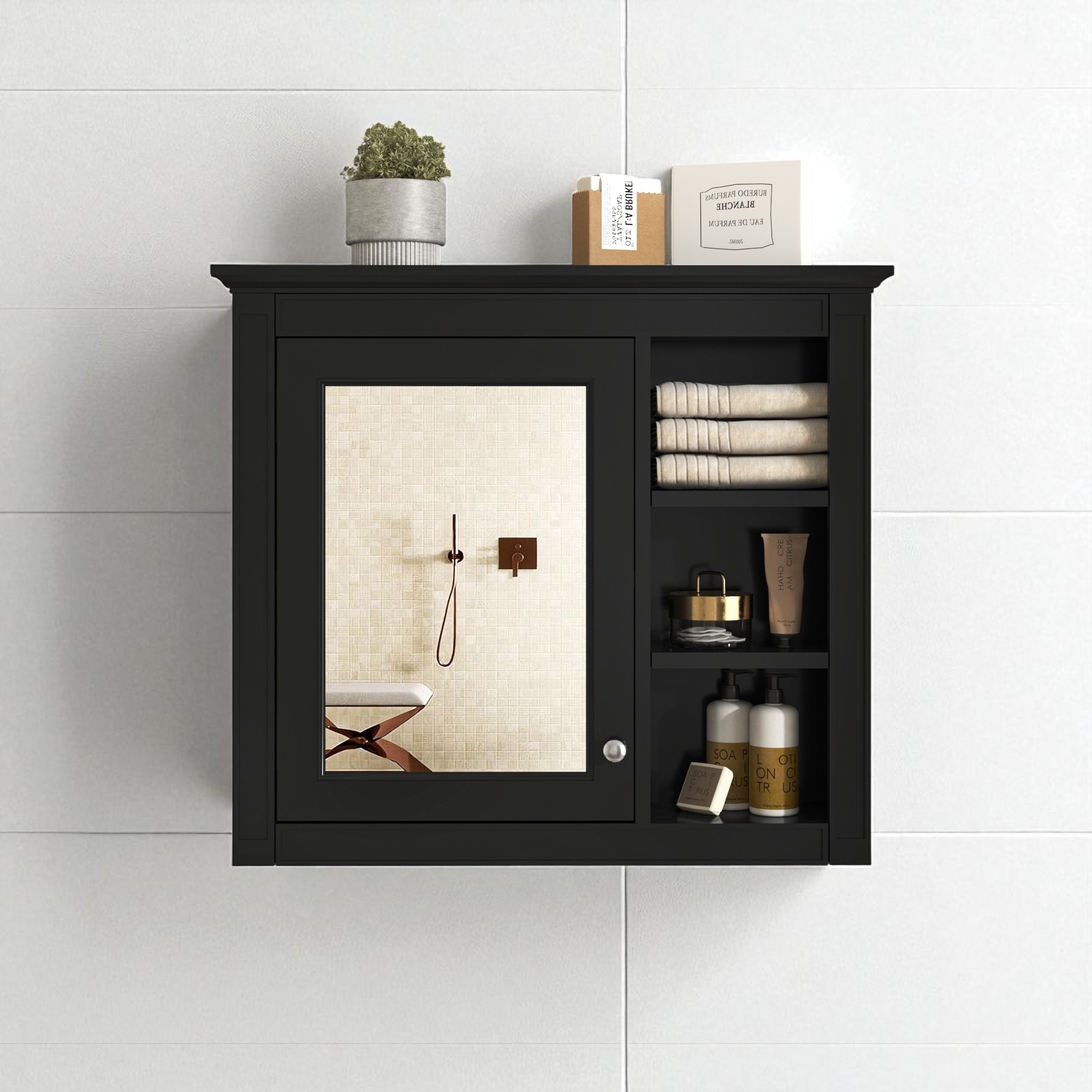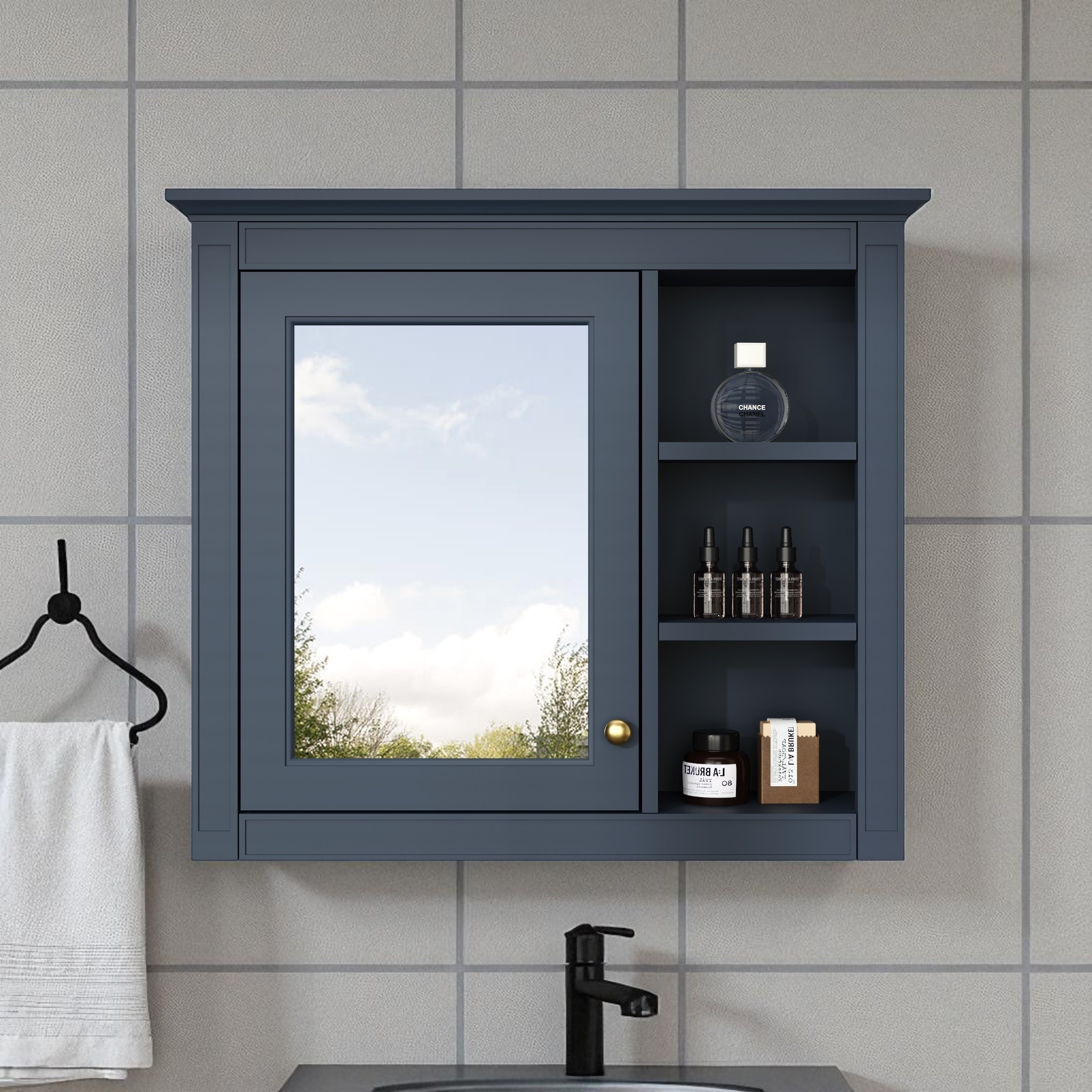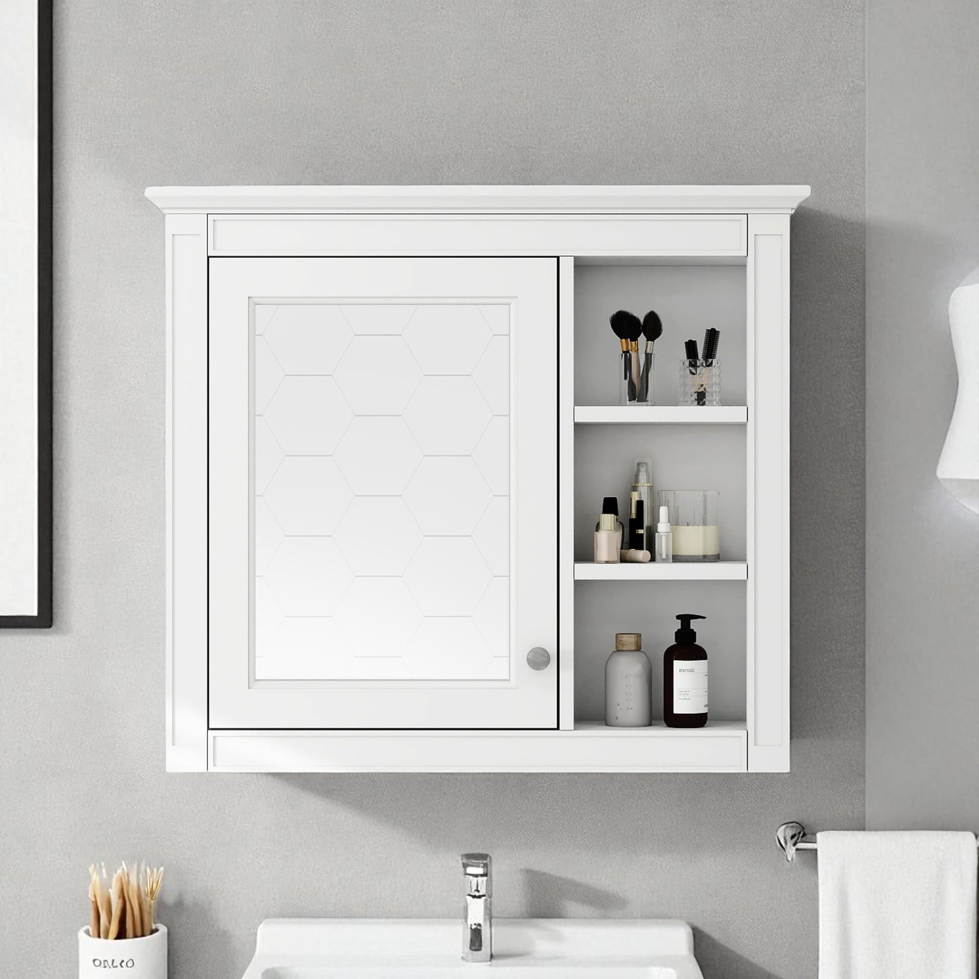 Medicine Cabinet, Wall Mounted Bathroom Storage Cabinet with Mirror, Modern Bathroom Wall Cabinet with Concealed & Open Shelves
