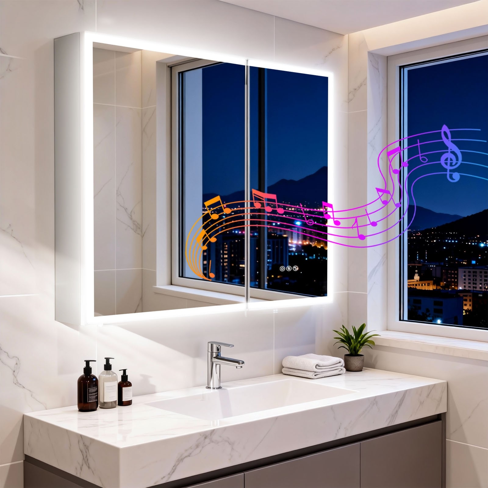 LED Aluminum Bathroom Medicine Cabinet with Bluetooth Speaker, Socket