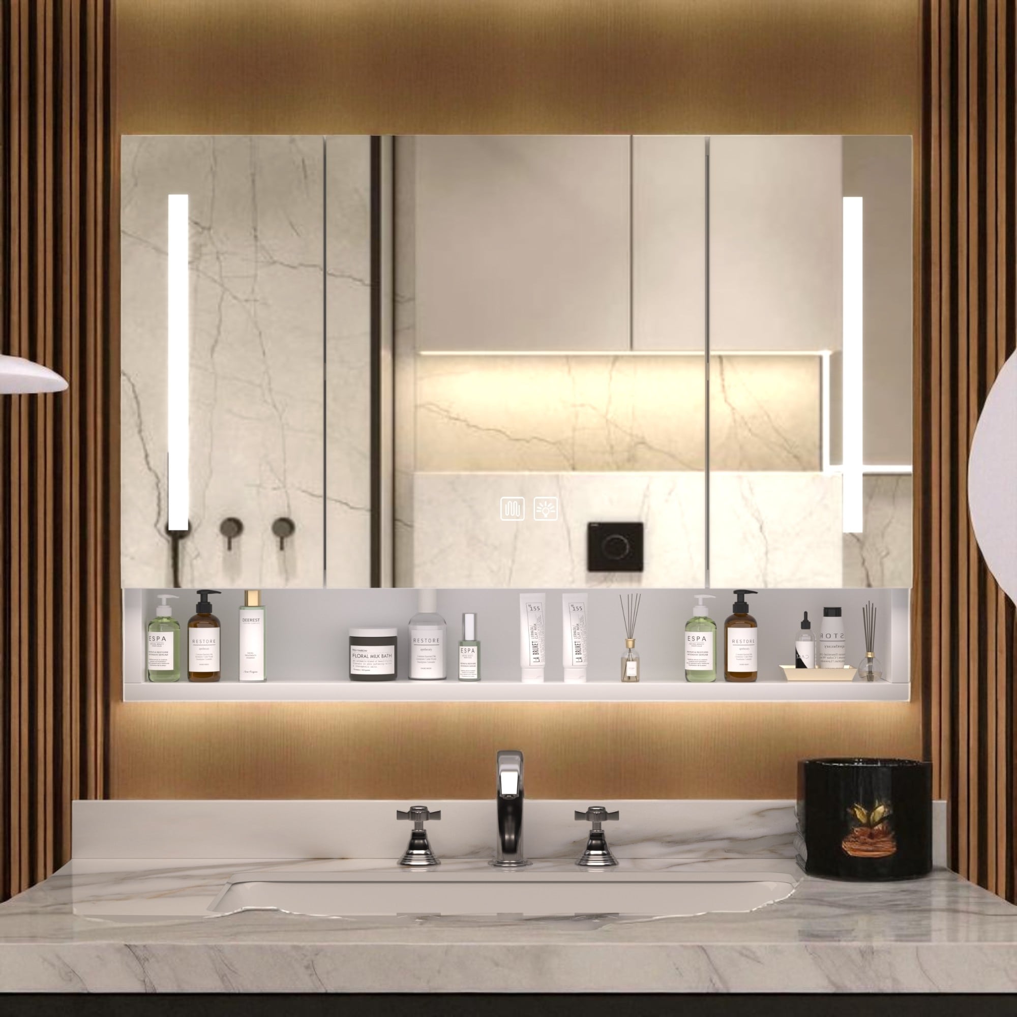 Medicine Cabinet Mirror with LED Light and Defogging Function, Mirror Cabinet with Cosmetic Storage Rack and Hair Dryer Holder