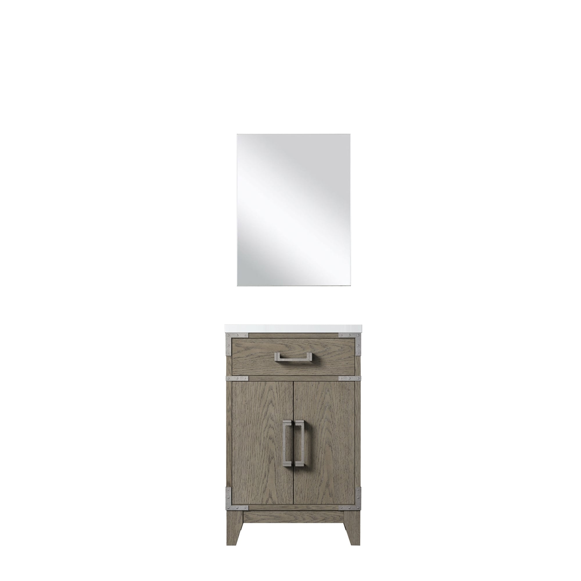 Grey Oak Single Bath Vanity 20 in. W x 18 in. D, Acrylic Countertop and 18 in. Mirror