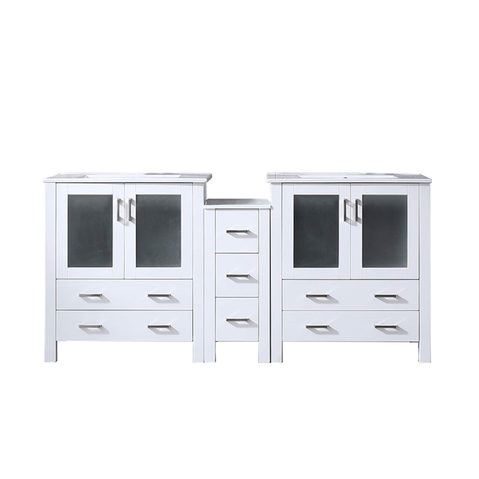 White Double Bath Vanity 72 in. W x 18.25 in. D, with Side Cabinet, and White Ceramic Top