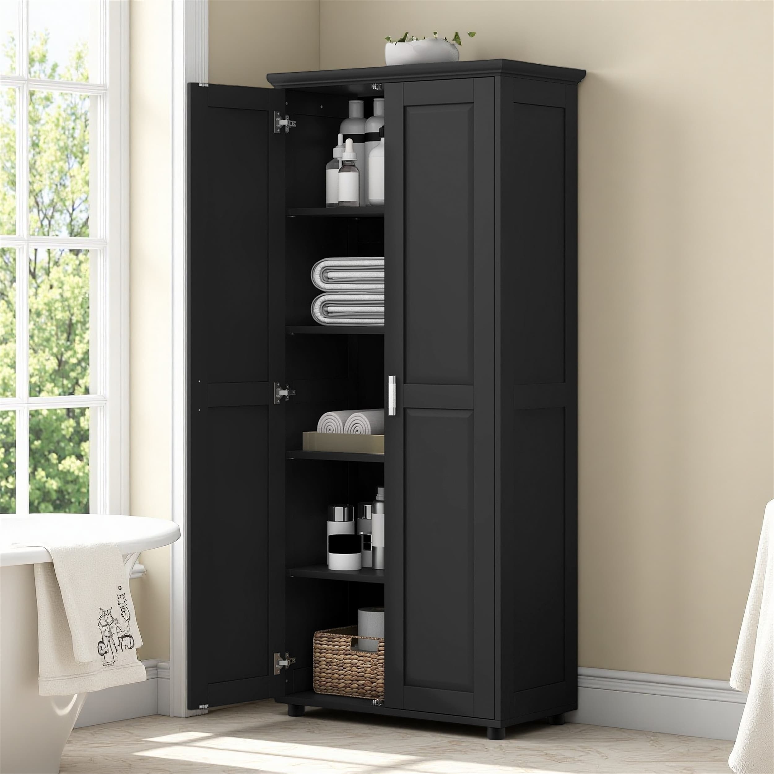 Farmhouse Freestanding Linen Tower with Shelves, Drawer, and Doors
