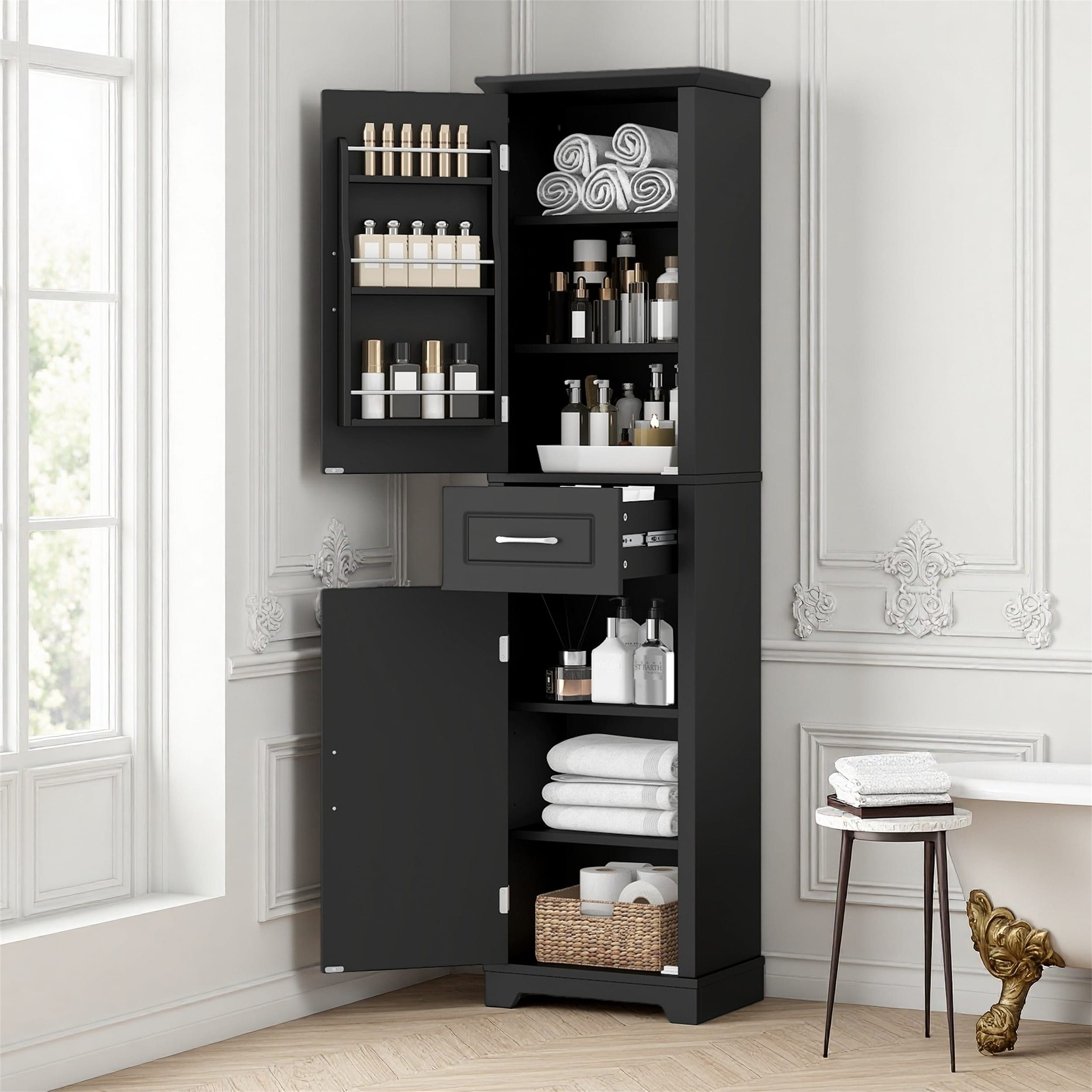 Vanity Art 72" Tall Tower Bathroom Linen Cabinet with Soft Close Door and Drawer