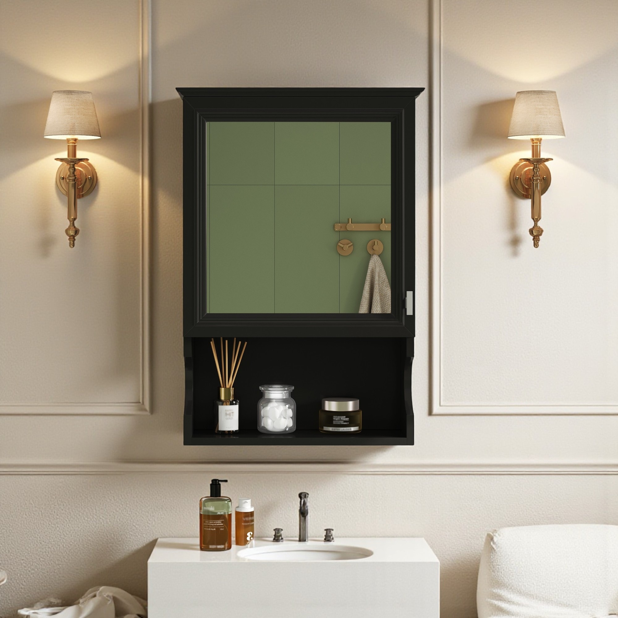30'' x 28'' Wall Mounted Bathroom Storage Cabinet with Mirror,Modern Design,3 Open Shelves,Space-Saving and Stylish