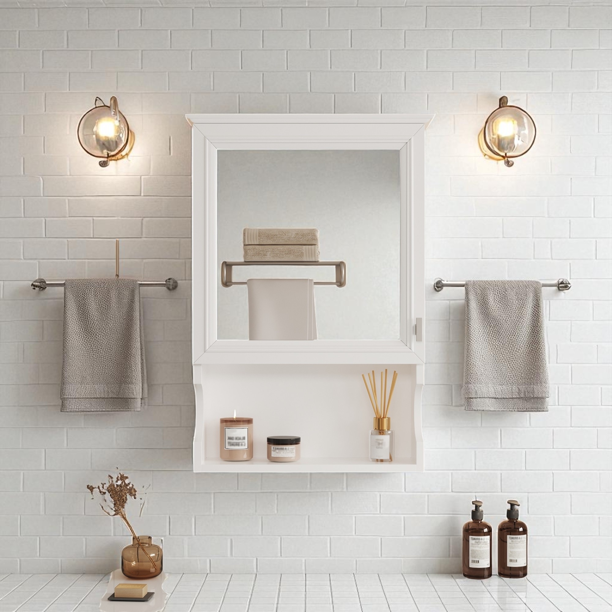 35'' x 28'' Wall Mounted Bathroom Cabinet, Modern Bathroom Wall Cabinet with Mirror and Open Shelves