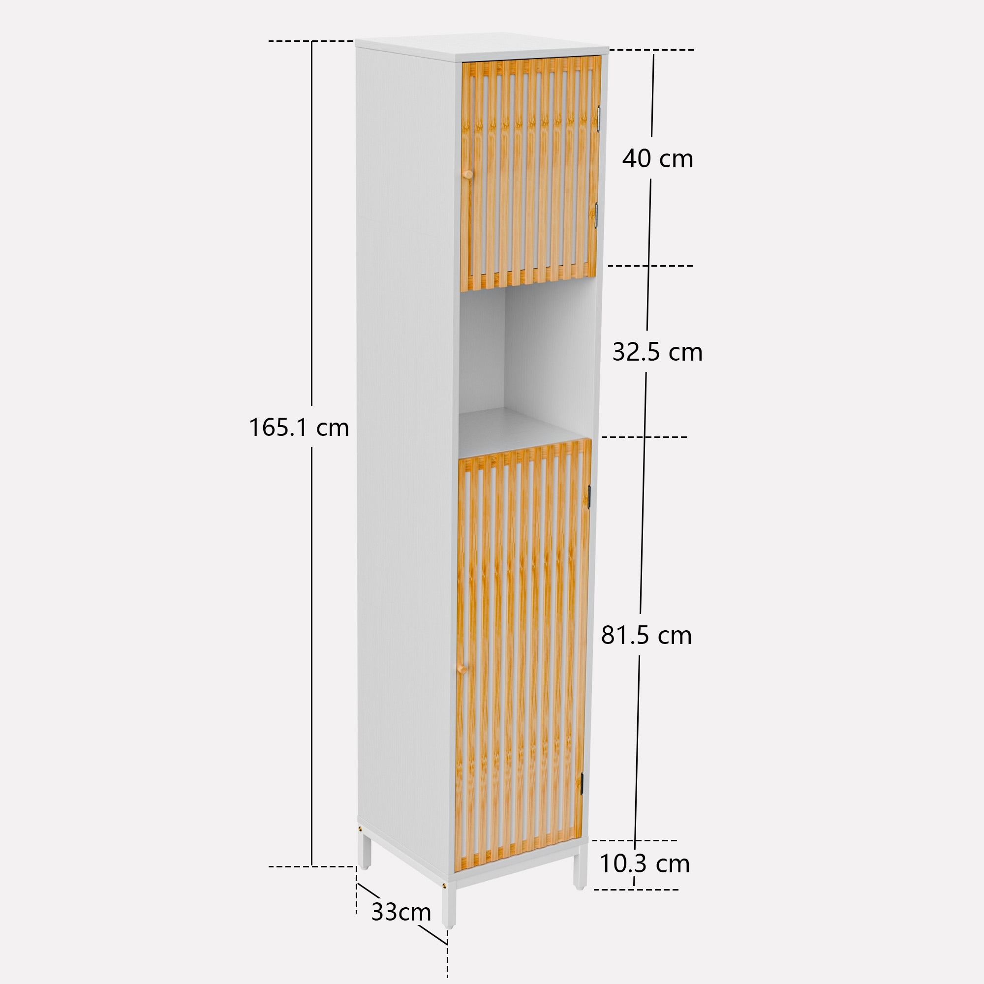 Bathroom Tall Storage Cabinet with Bamboo Slats Door - Natural/White