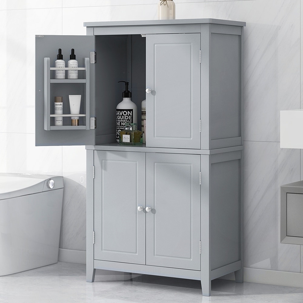 Versatile Corner Storage Solution - Freestanding Cabinet with Adjustable Shelves & Doors for Bathroom, Kitchen or Living Room