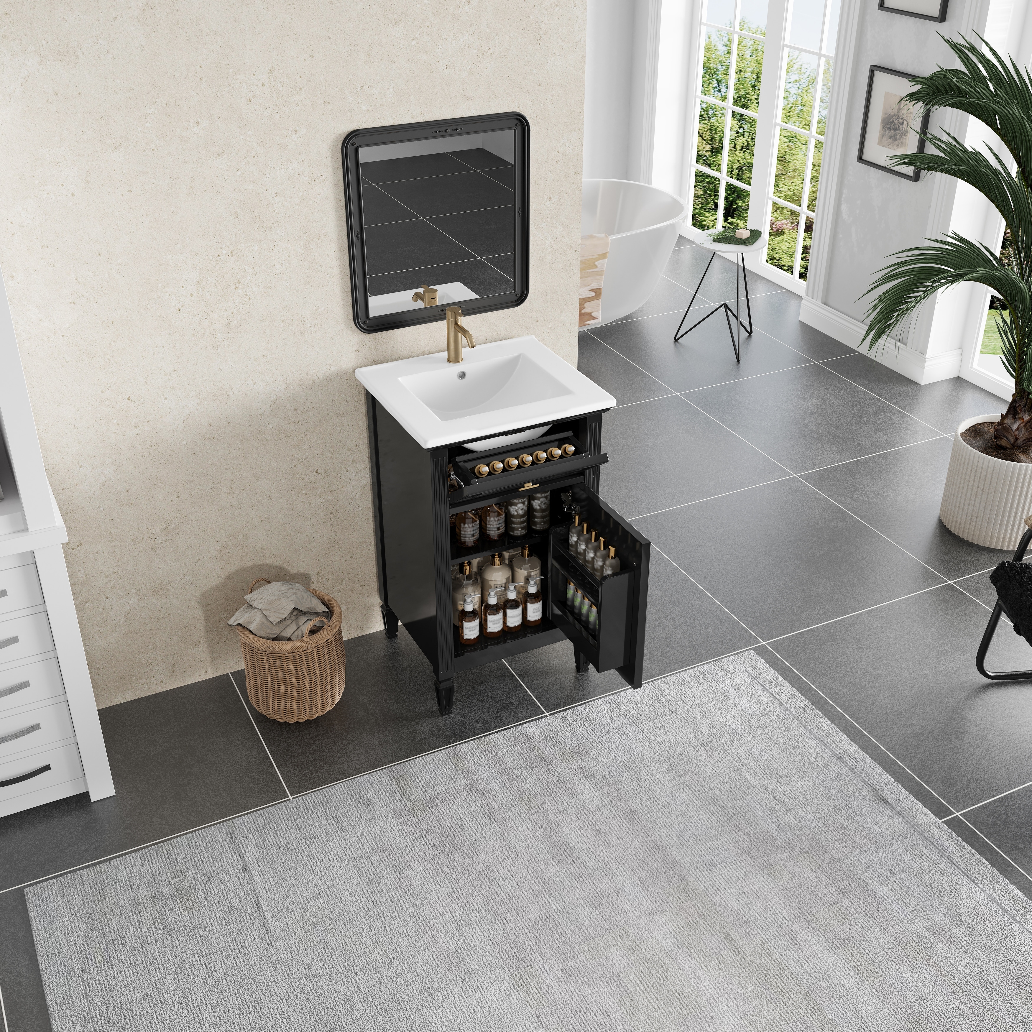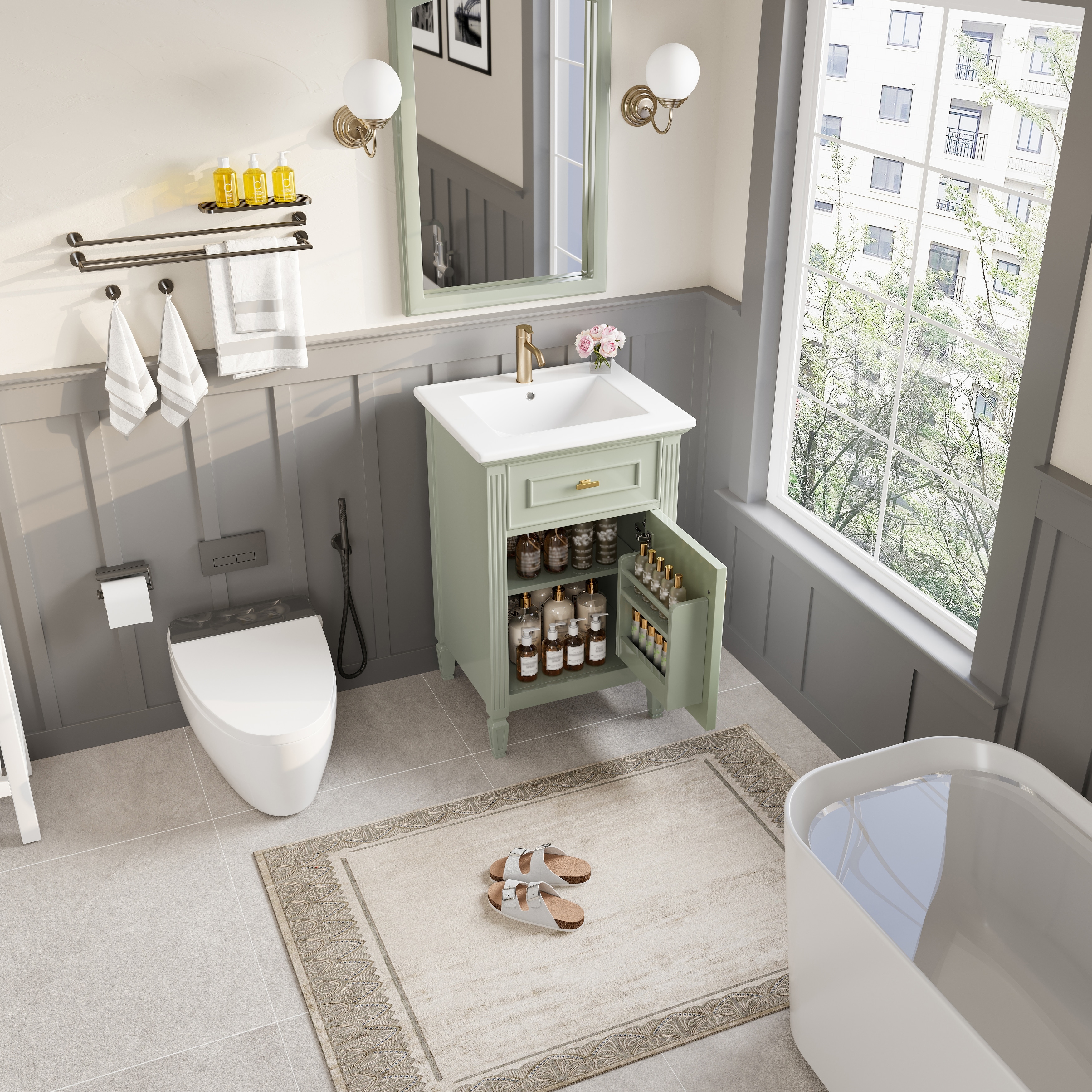 Bathroom Vanity with Sink, Wood Legs and Adjustable Shelf